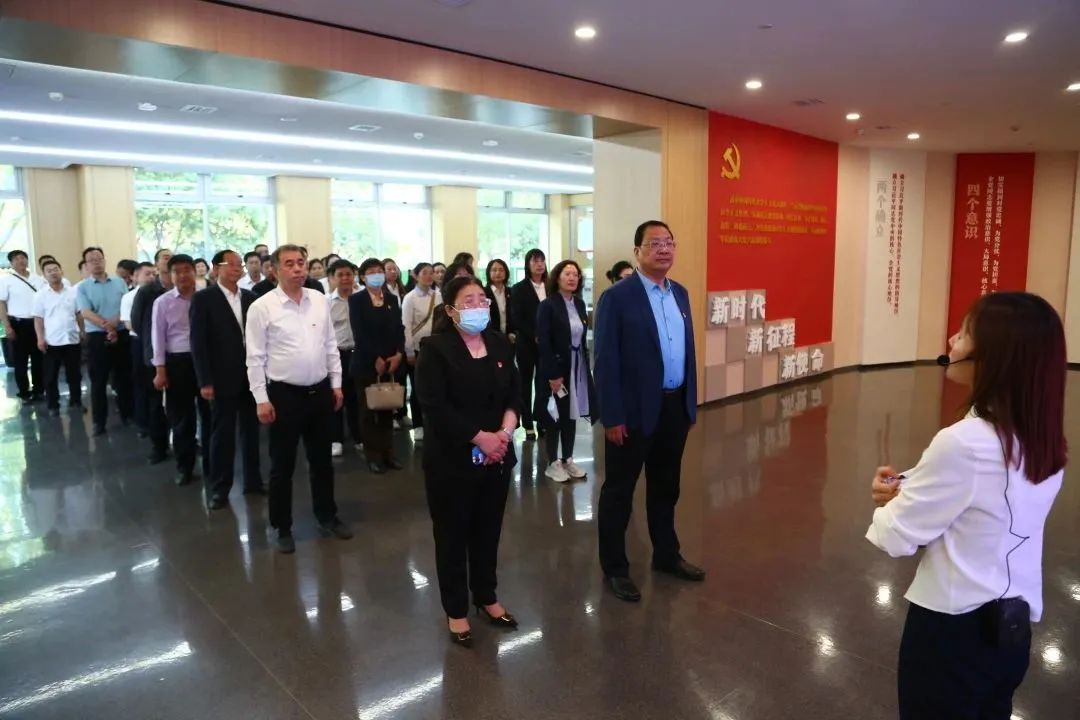 步步见廉景、处处闻廉语、时时受廉教。在讲解员的带领下,大家首先在序厅观看了以“不忘初心,筑梦运城”为主题的专题片,随后依次参观了“溯源·河东育清风”“铸魂·守正葆初心”“警示·歧路误终生”“使命·同心共筑梦”展厅。最后,全体党员干部在党旗下庄严重温入党誓词。