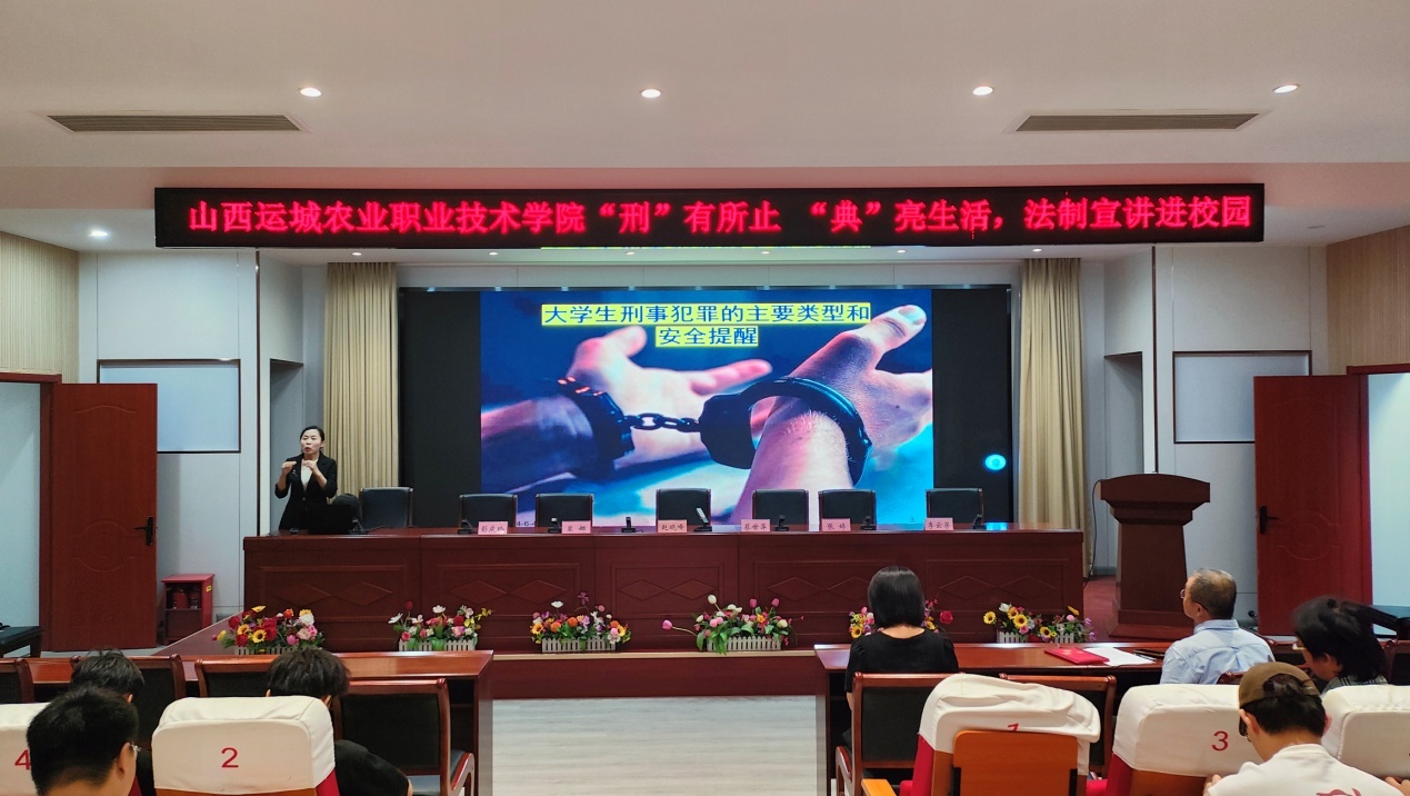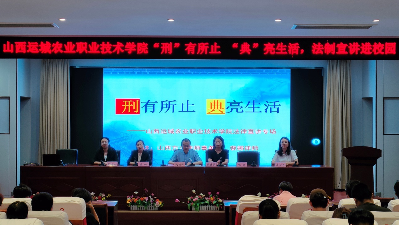 此次法治法宣讲活动学院赵晓峰副院长主持,邀请山西方立律师事务所裴娜律师、彭庆玲律师、李云芳律师,围绕大学生易触网络犯罪;大学生易触人身类、财产类犯罪;和大学生如何维护自己的权益,日常维权和防止侵权等内容分别展开讲解。