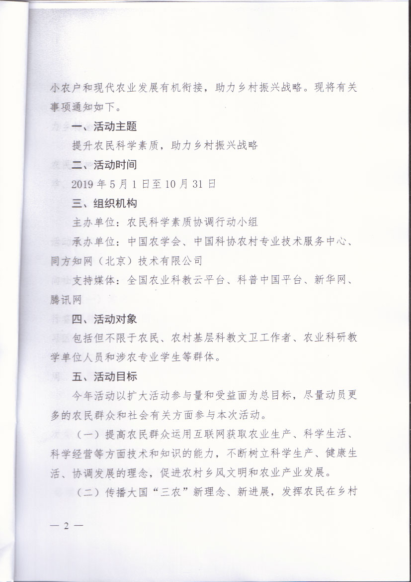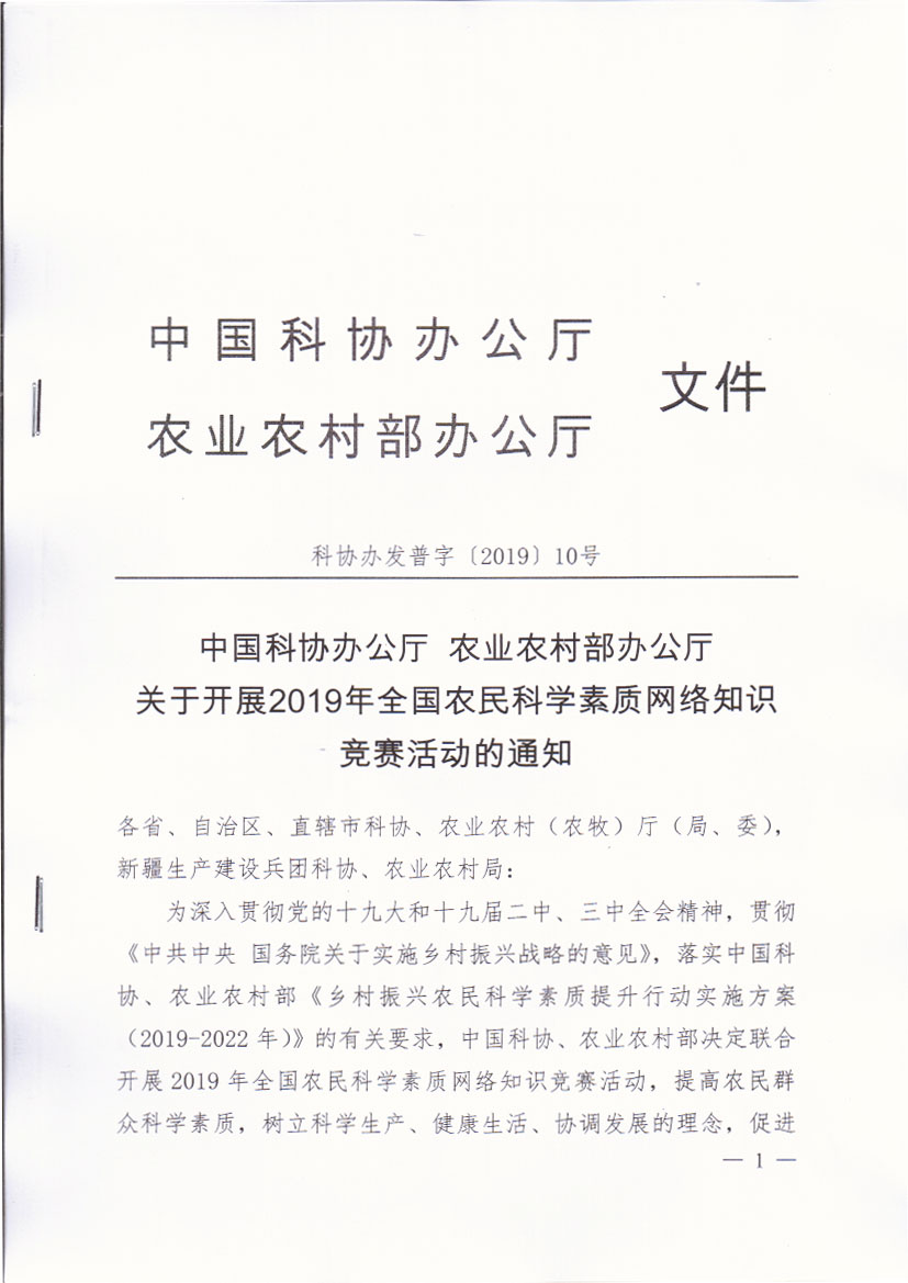 关于开展2019年全国农民科学素质网络知识竞赛活动的通知