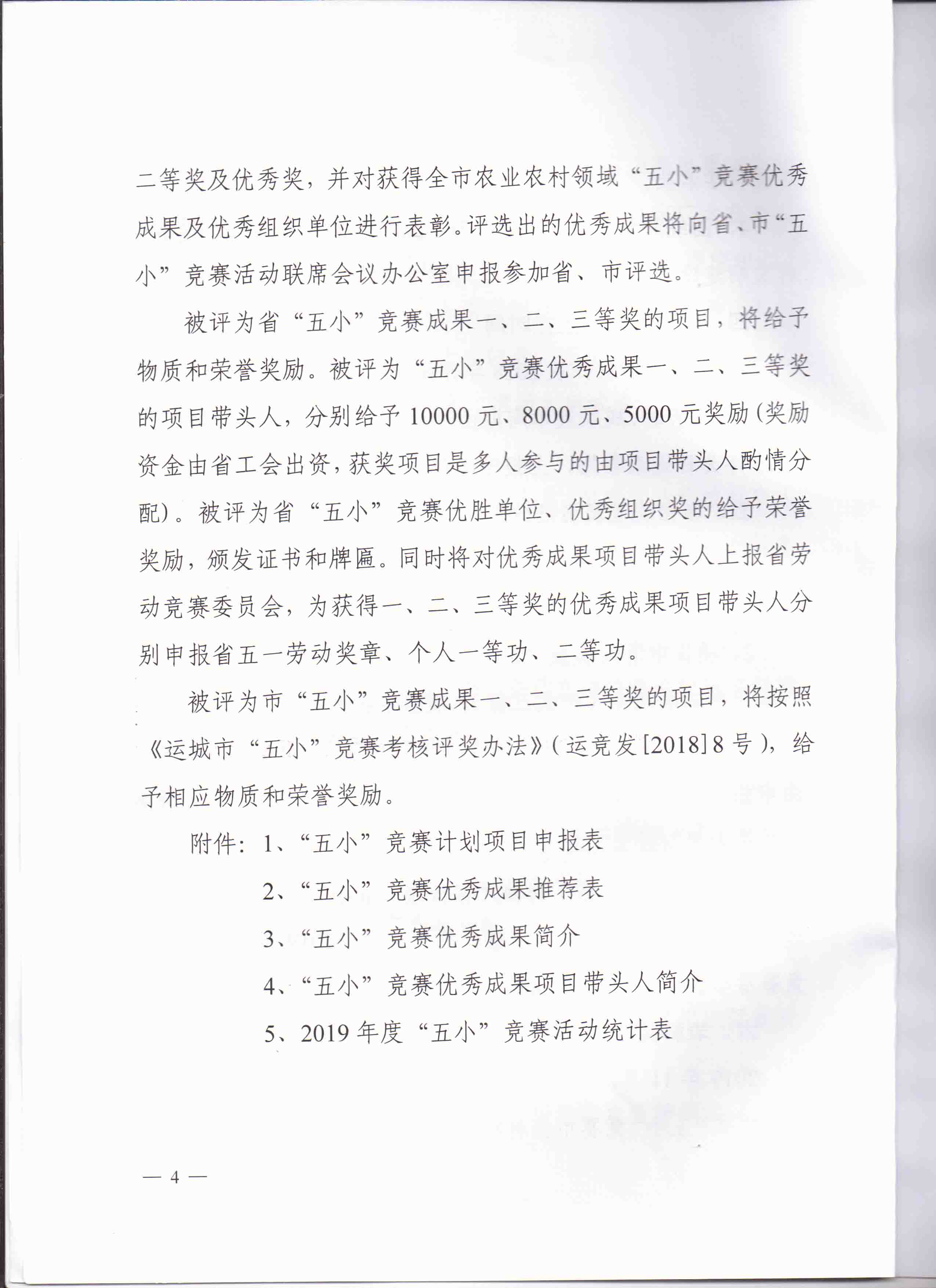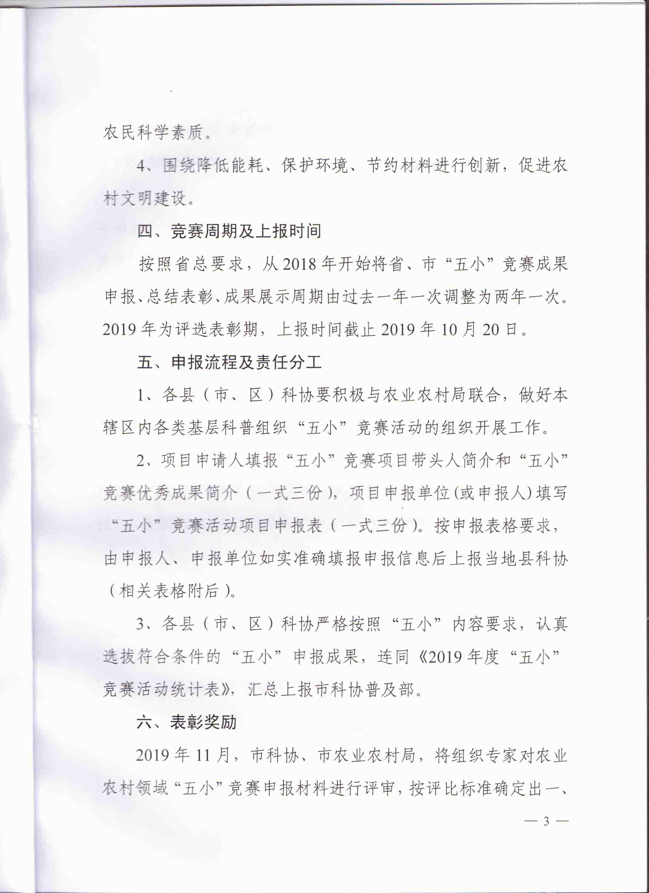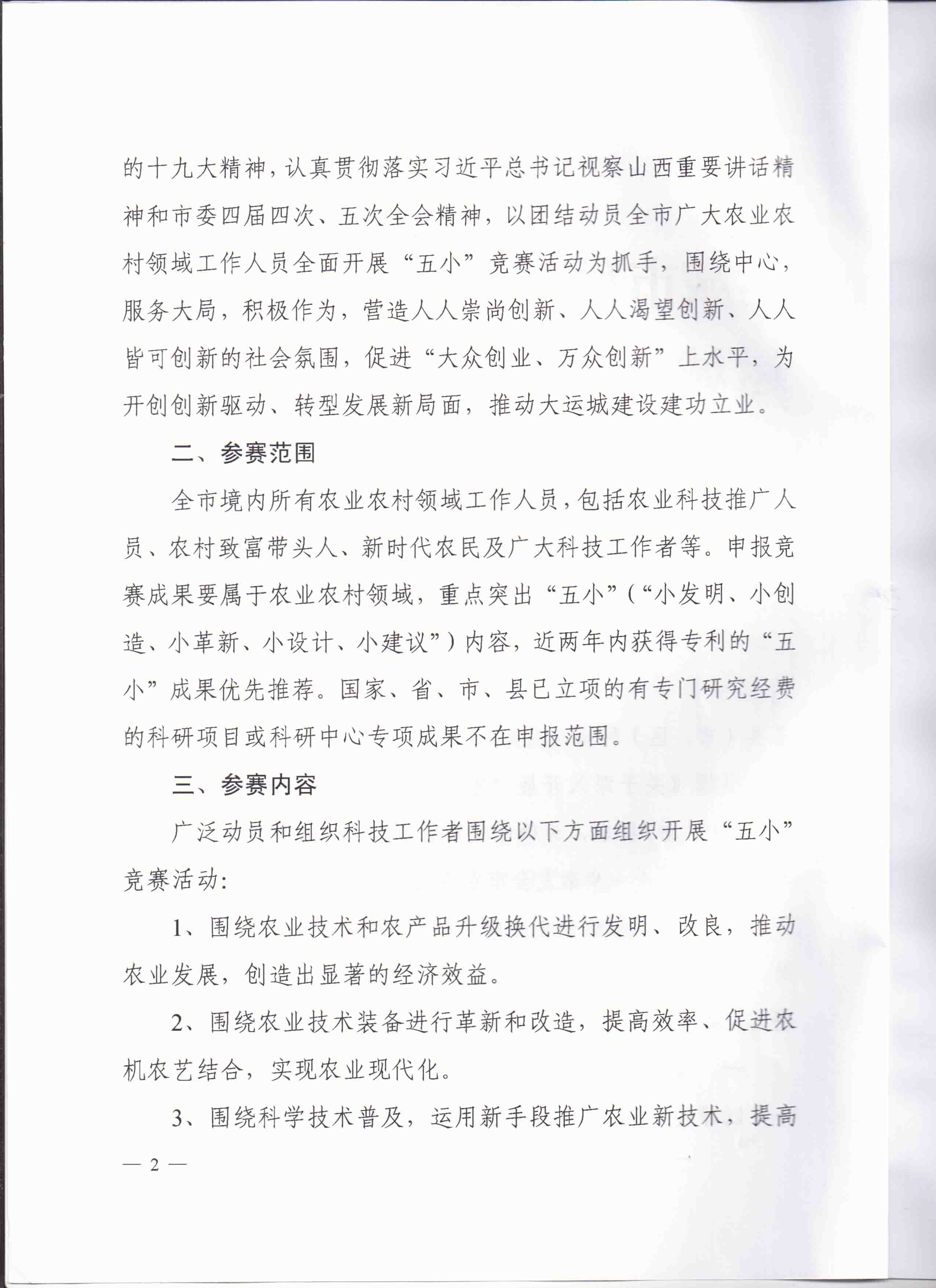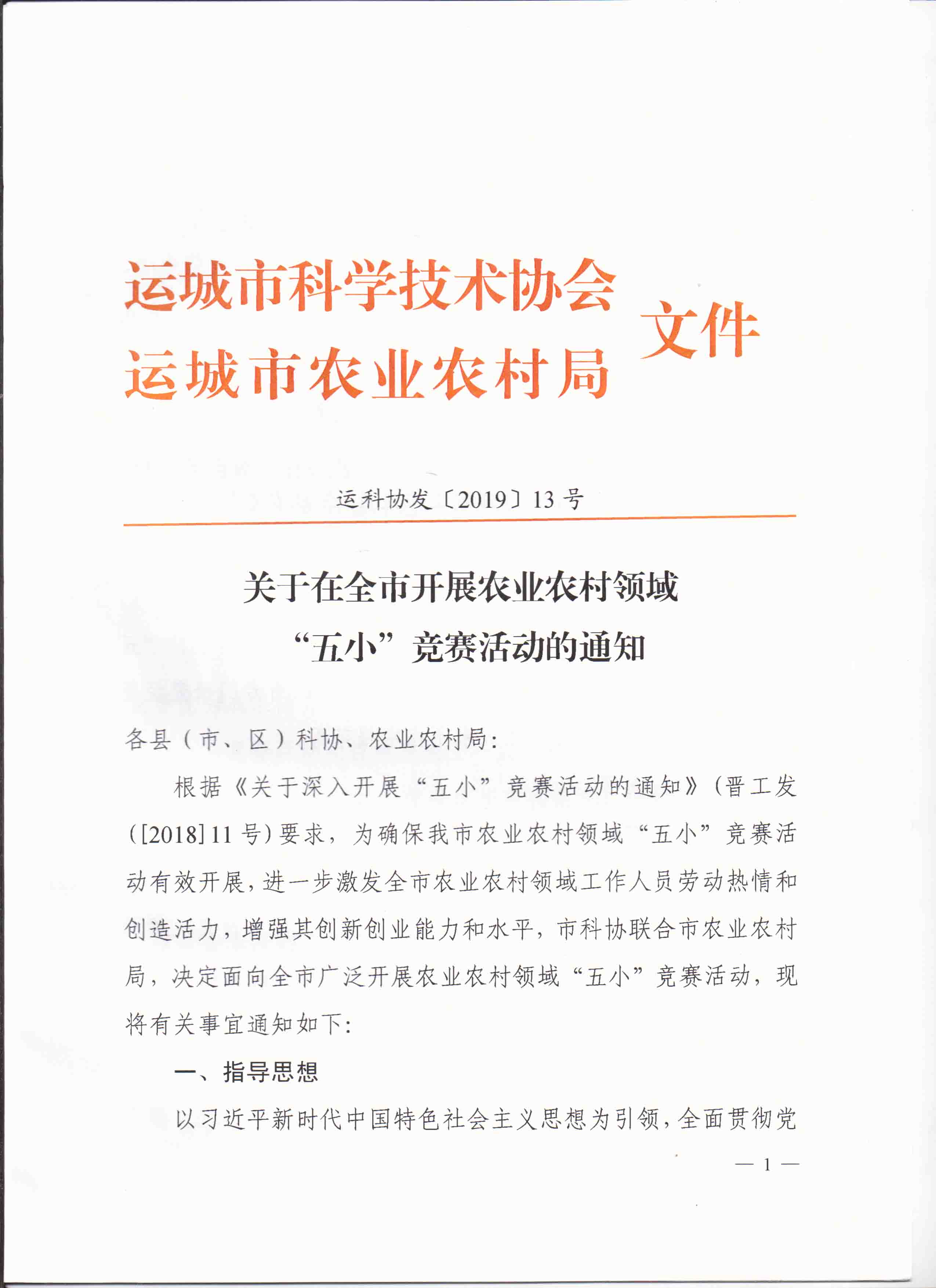 关于在全市开展农业农村领域“五小”竞赛活动的通知