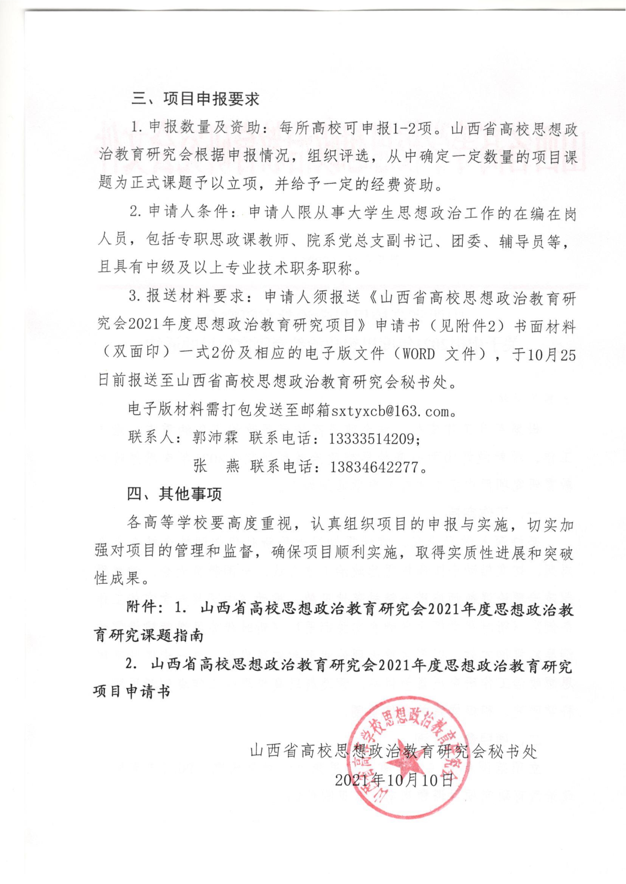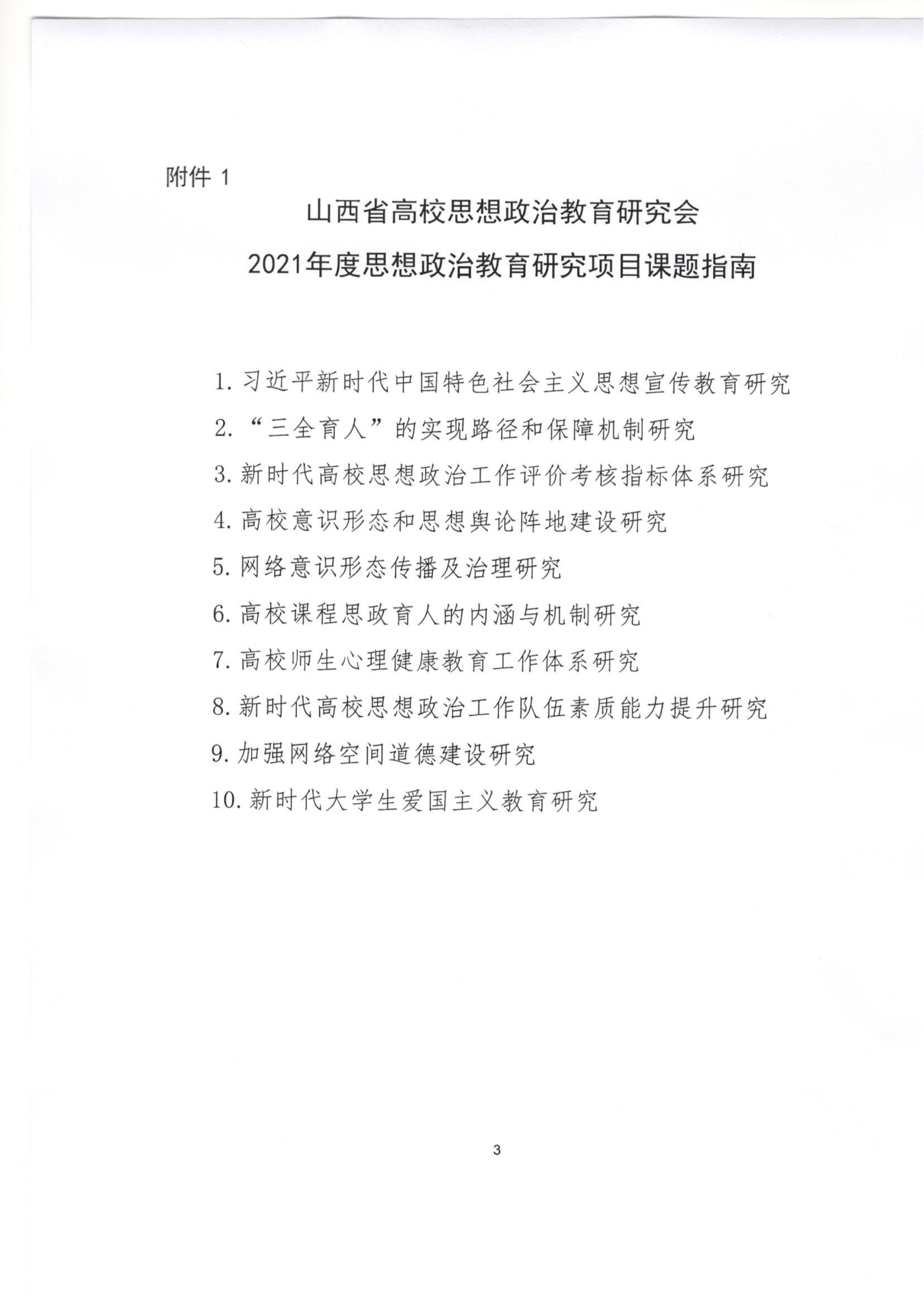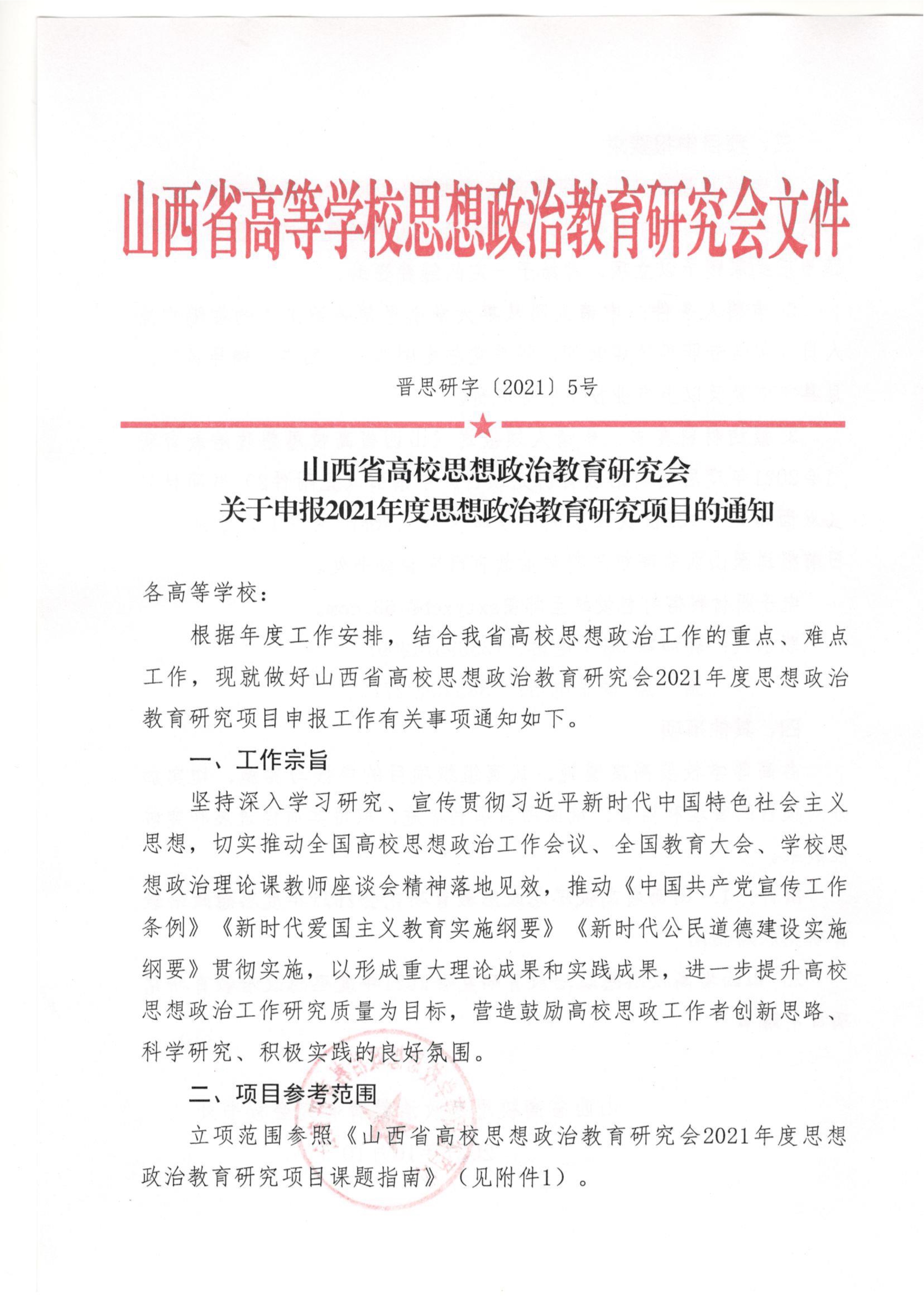 山西省高校思想政治教育研究会关于申报2021年度思想政治教育研究项目的通知