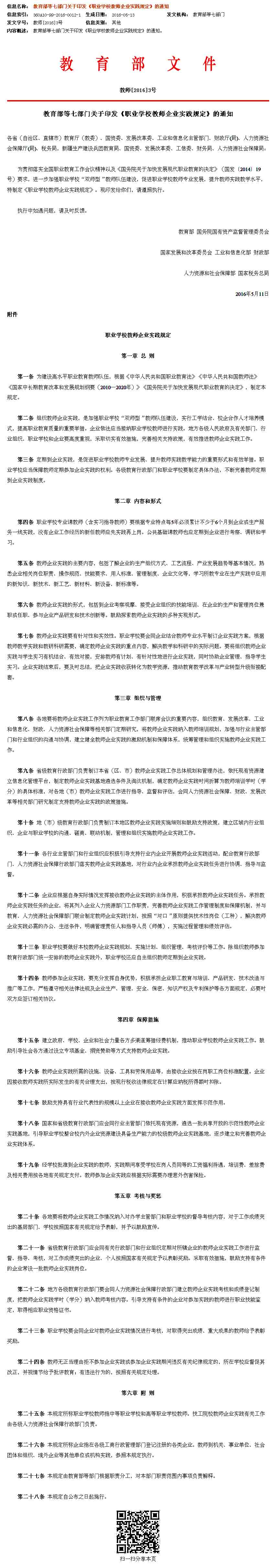 教育部等七部门关于印发《职业学校教师企业实践规定》的通知