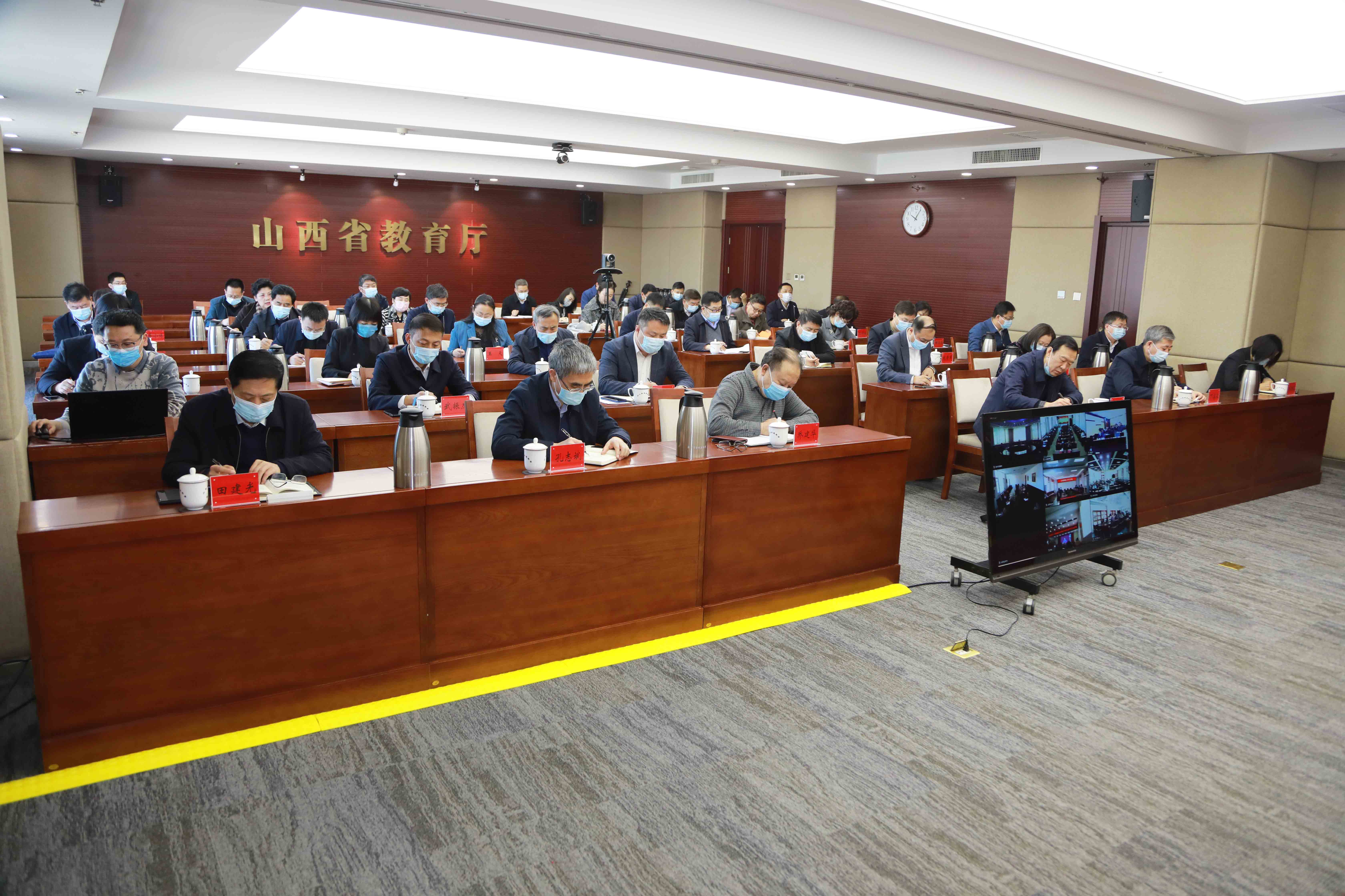 会议以电视电话会议形式召开。省委教育工委、省教育厅领导班子成员,驻厅纪检组负责人,厅机关各处室和直属单位主要负责人在主会场参会;市县两级教育行政部门、各高等学校、厅属中职学校领导班子成员在分会场参会。