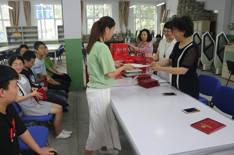 6月17日下午,图书馆在三楼阅览室举行2019年度优秀图书义务管理员表彰会。冯水桃老师勉励大家,充分利用当图书管理员的机会,多读书读好书,做好图书管理员的工作,为毕业实习和今后的工作积累经验。姚科云副院长为优秀义务管理员颁奖,并与图书馆工作人员和学生管理员合影。