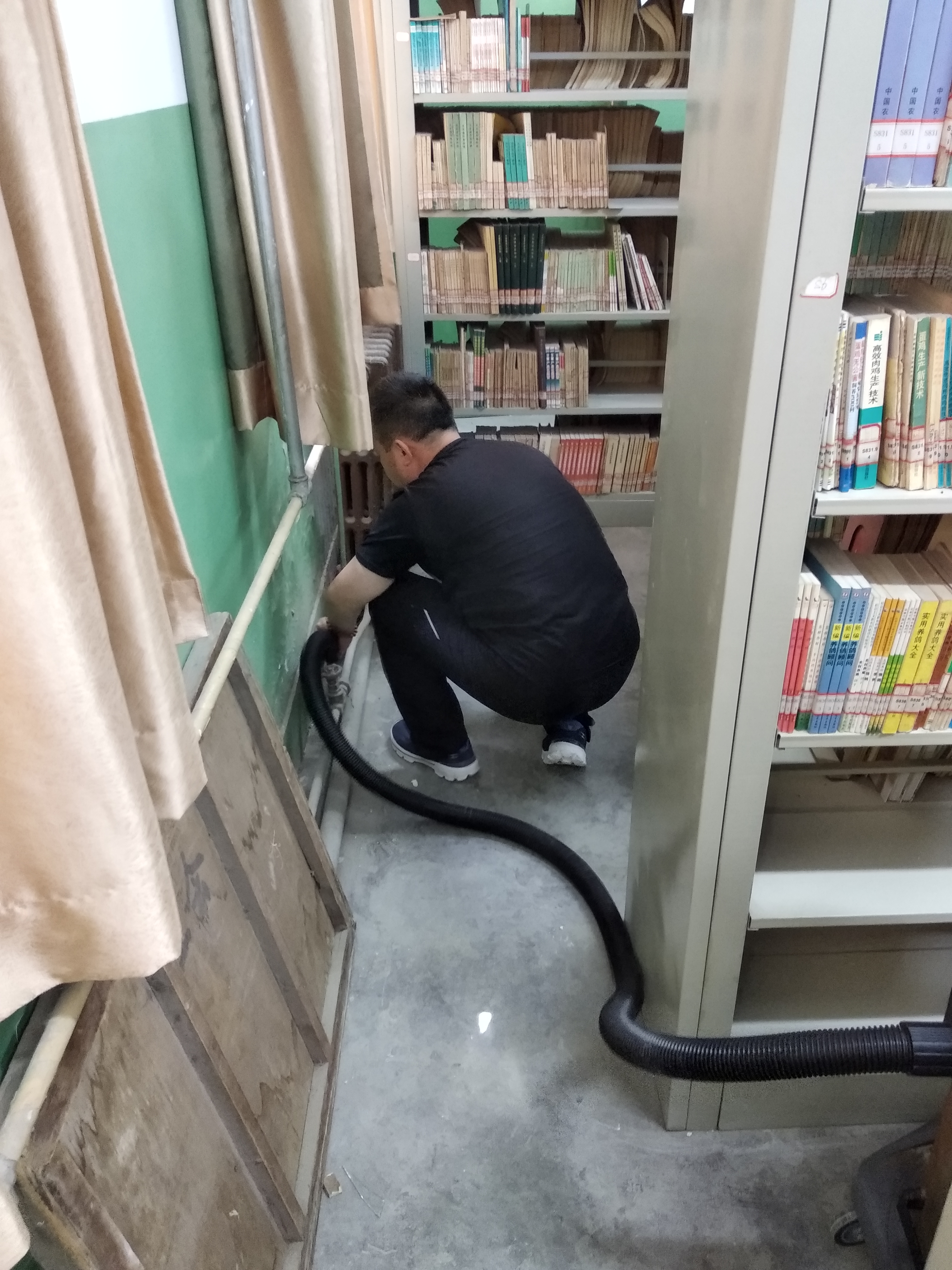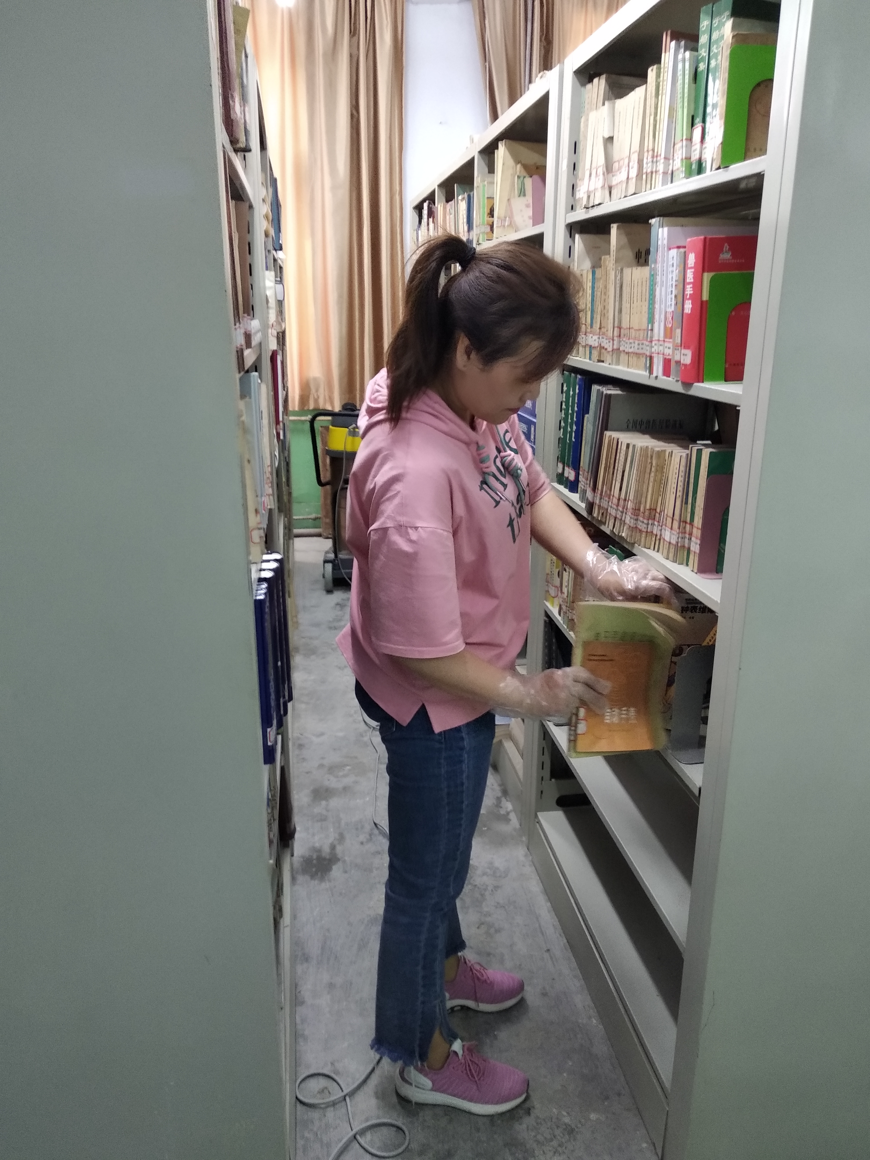 六月一日,图书馆全体人员在书库加固工程完工后,对一楼书库进行全面整理清洁,努力为全院师生创造一个整洁的借阅环境。
