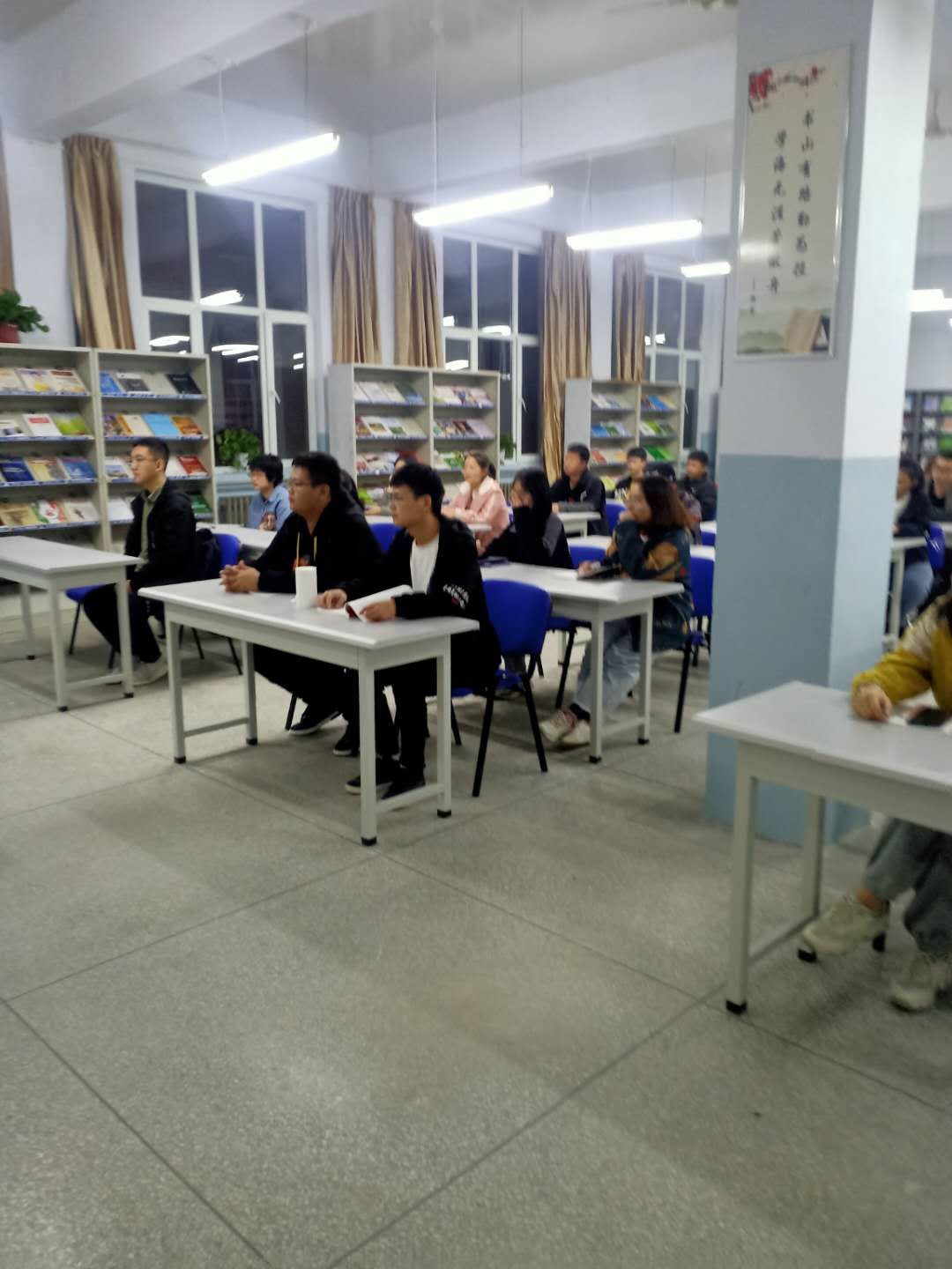 随着新一届学生的正式开学,图书馆义务管理员也开始了换届工作。11月8日晚,副馆长张雷同志召集各班的学习委员和有志于从事义务管理员工作的同学,在三楼阅览室举行会议。会上主要向学生传达了以下内容:一、阅览室自即日起,周一至周五晚自习期间,分班次向学生开放,学生须听从管理员要求,遵守阅览室阅读秩序。二、义务管理员要做好新老帮带工作,让新的义务管理员尽快熟悉管理事项。