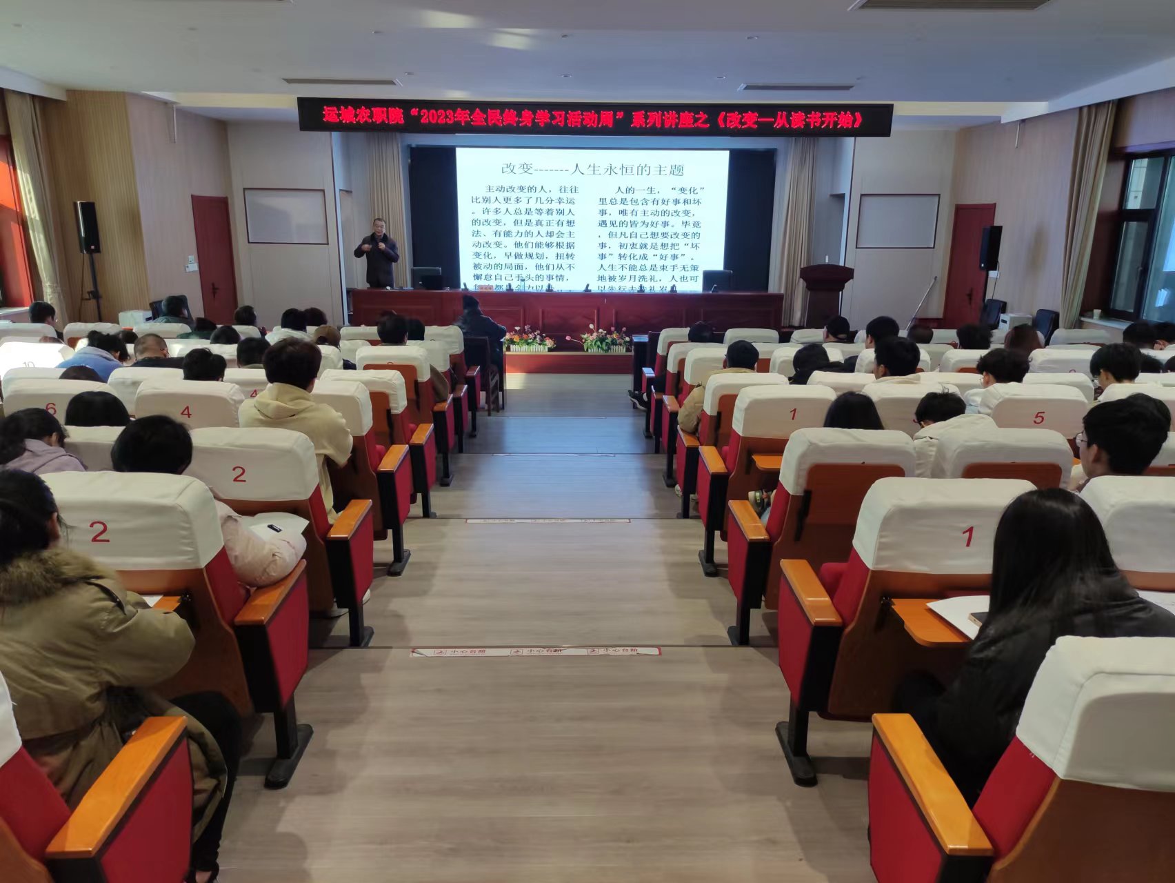 11月13日,学院党委委员、副院长赵晓峰同志在五楼会议室为全院师生做题为《改变,从读书开始》的专题讲座。
