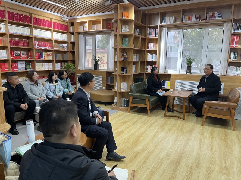 11月13日,原平农校一行来taptap点点考察,党委书记张作伟在图书馆书吧接待。