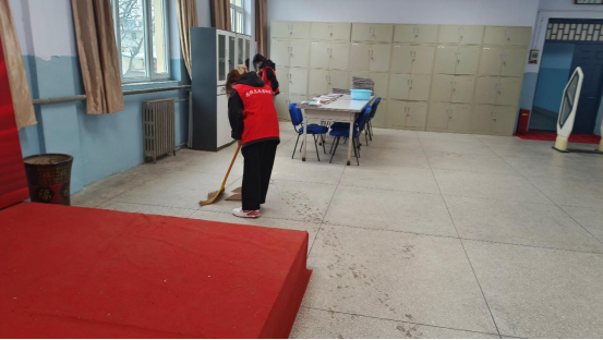 志愿服务过程中,志愿者们分工明确、相互配合、齐心协力,始终保持着热情的工作态度。在志愿者们一丝不苟的打扫图书馆后,阅览室的桌椅板凳,书柜地面变得亮洁如新,展现出志愿者们积极向上、无私奉献的志愿服务精神。