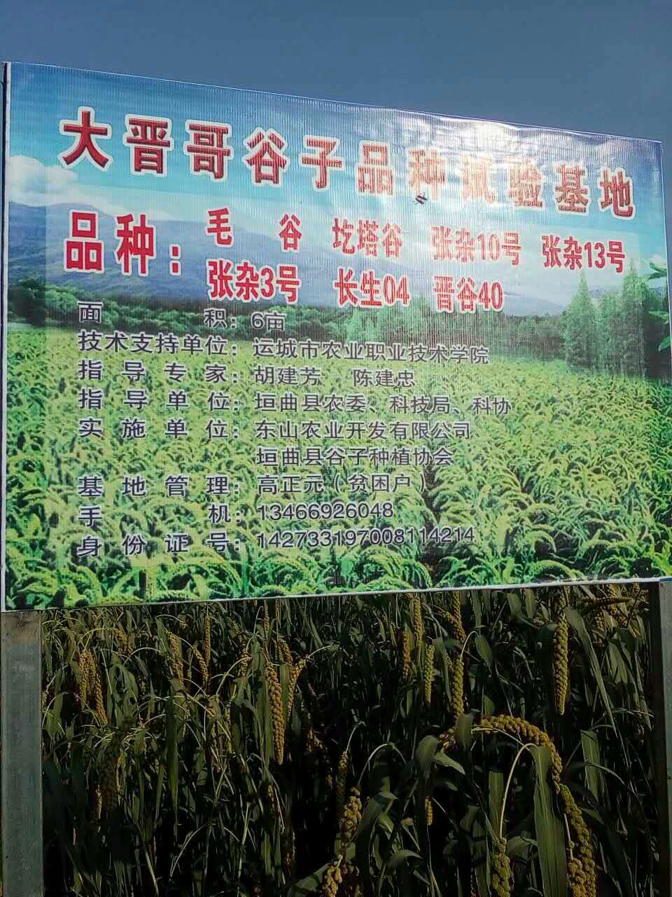 “大晋哥”小米功能配料及食品开发现代农业示范园是taptap点点与垣曲县东山农业开发有限公司校企合作的代表之一,主要进行谷子的种植区划、优良品种筛选、加工、营销等方面的深度融合,已取得初步成果,胡建芳、陈建中二位博士技术指导的大晋哥谷子品种试验基地喜获丰收,筛选工作正在稳步推进。