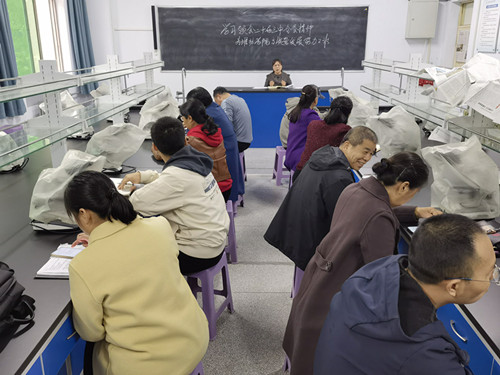 11月5日,实验中心全体人员在实训楼205室听取了丁芳珍副主任题为《学习领会二十届三中全会精神 为推动学院高质量发展努力工作》的报告。