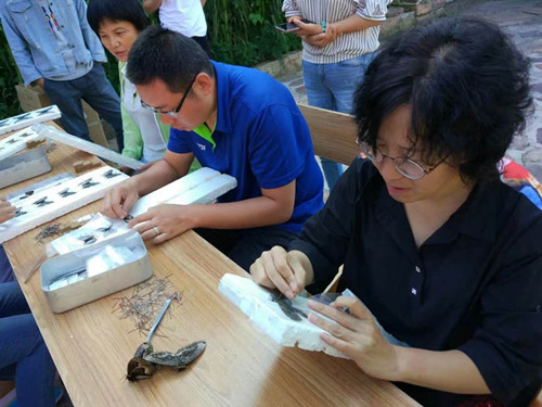 电教实训中心教师准备“文明校园”活动昆虫标本展