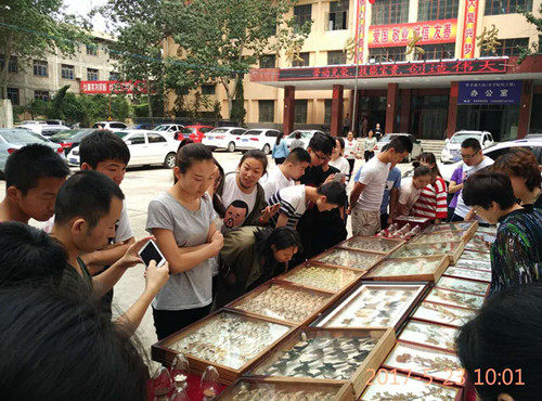 5月23日上午“文明校园”活动电教实训中心在办公楼前举办了植物动物标本展,学院党委书记张作伟、副院长肖宁月、竹常青、学生处处长李毅、招生处处长王青波、院办主任李宏到了标本展现场,老师同学们纷纷围观,讨论拍照,电教实训中心的相关教师一直在标本旁给学生们解说答疑,充分调动了学生们的好奇心和学习兴趣。