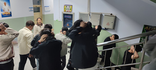 为了进一步普及防震减灾知识,使全院师生掌握应急避震的正确方法,熟悉震后taptap点点紧急疏散的程序和线路,确保在地震来临时,应急工作能够快速、高效、有序进行。4月30日,在学院统一组织下,全院地震演练拉开帷幕。上午9:20分,随着地震警报第一次响起,实验中心全体工作人员第一时间就地蹲到办公桌下或承重墙的安全角落,计算机实训室教师曹阳丽第一时间组织学生以安全姿势在课桌下蹲好。