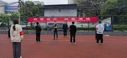 各工作人员分别在各个楼层维持疏散秩序。学生们有序从教室跑出,疏散到学校操场。经清点全体学生3分钟内全部疏散完毕,演练圆满结束。这次地震演练紧贴实战,组织有序,进一步提高了实验中心面对地震的应急组织能力,收到了良好效果。