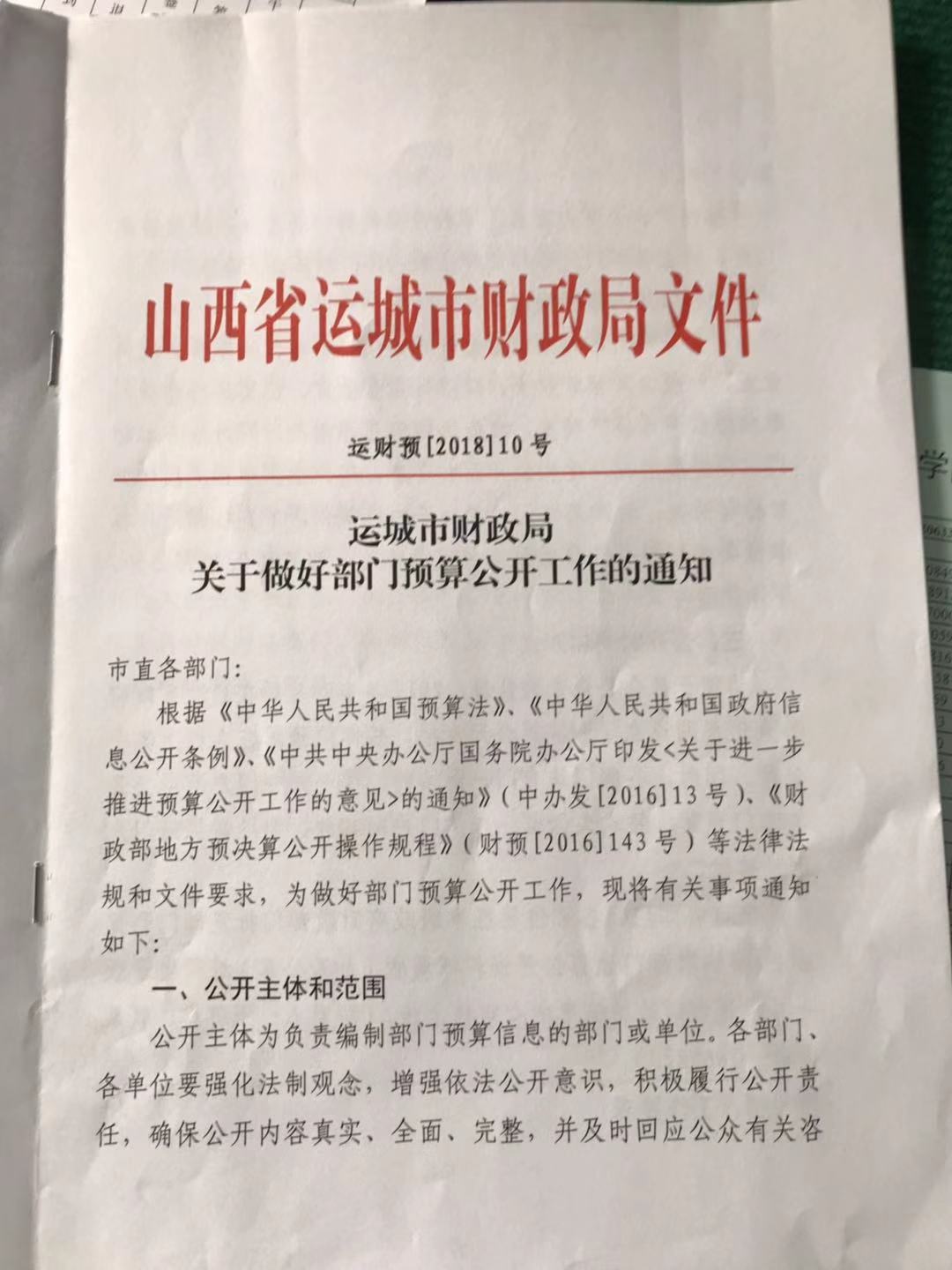 运城市财政局关于做好部门预算公开工作的通知