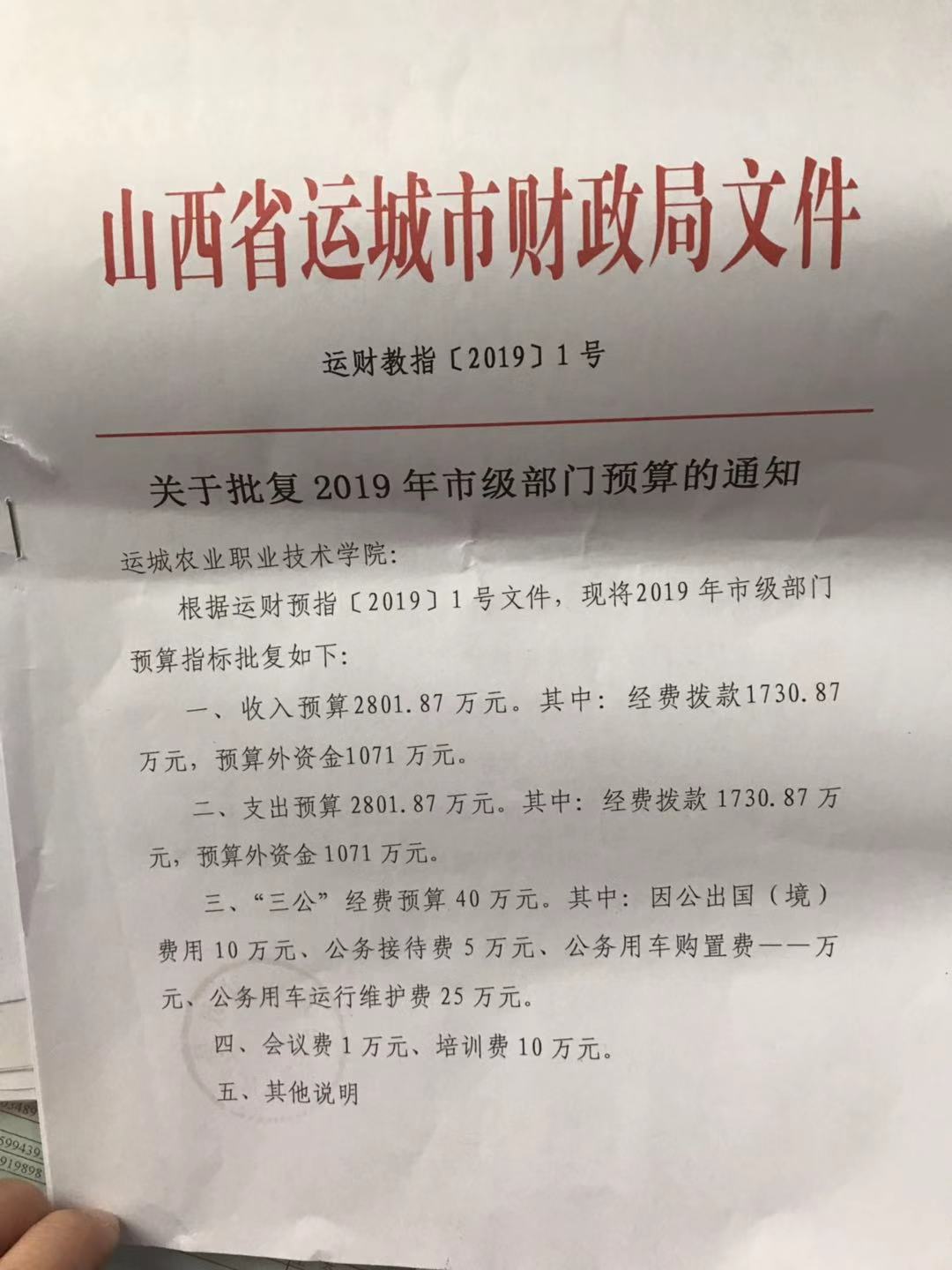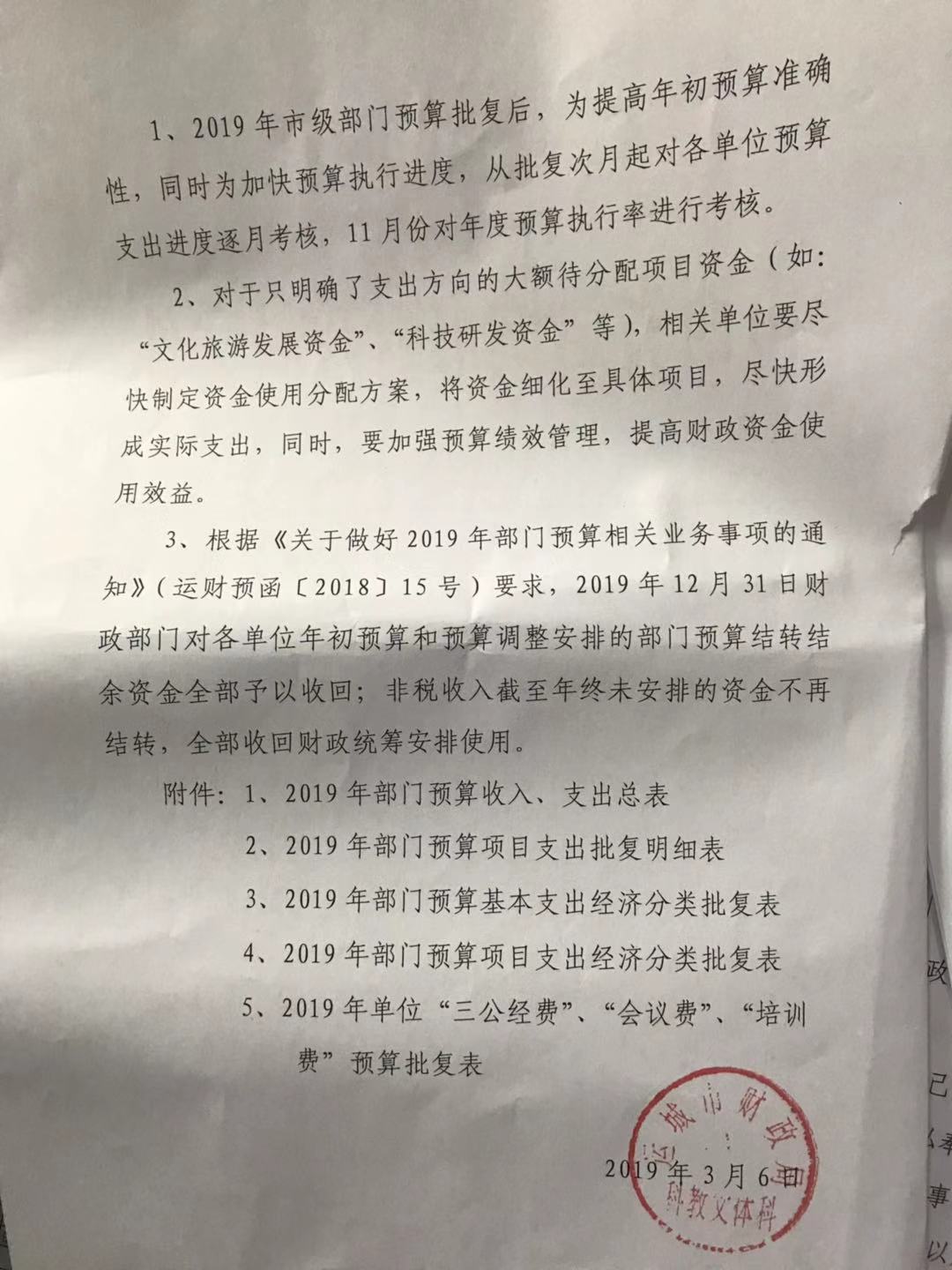 关于批复2019年市级部门预算的通知