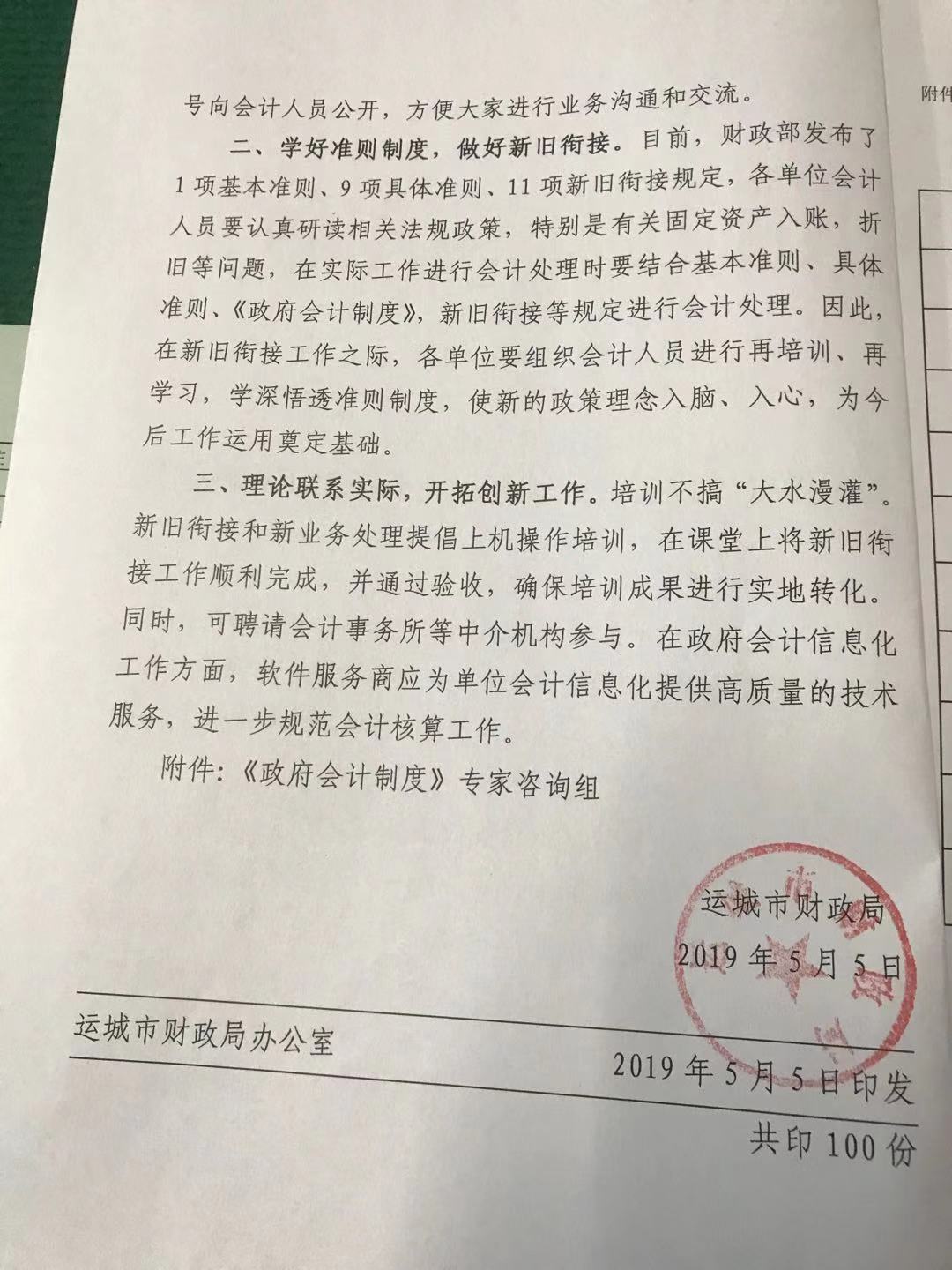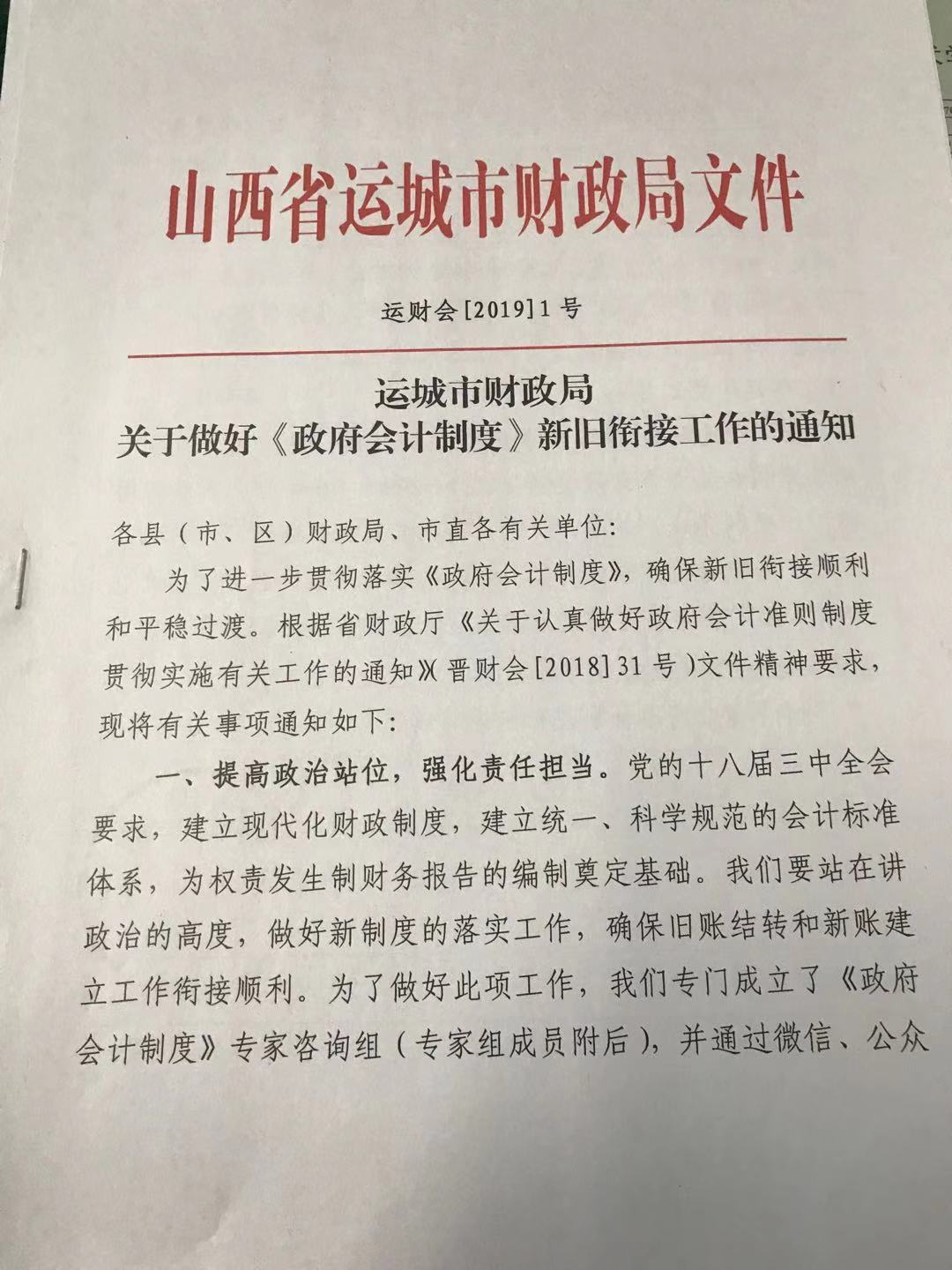 运城市财政局关于做好《政府会计制度》新旧衔接工作的通知