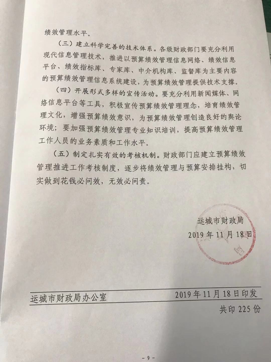 运城市财政局关于《全面实施预算绩效管理的实施方案》的通知