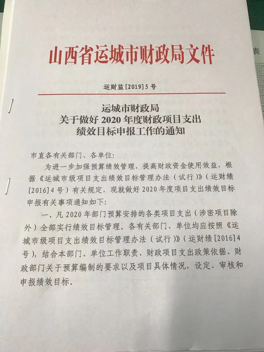 运城市财政局关于做好2020年度财政项目支出绩效目标申报工作的通知