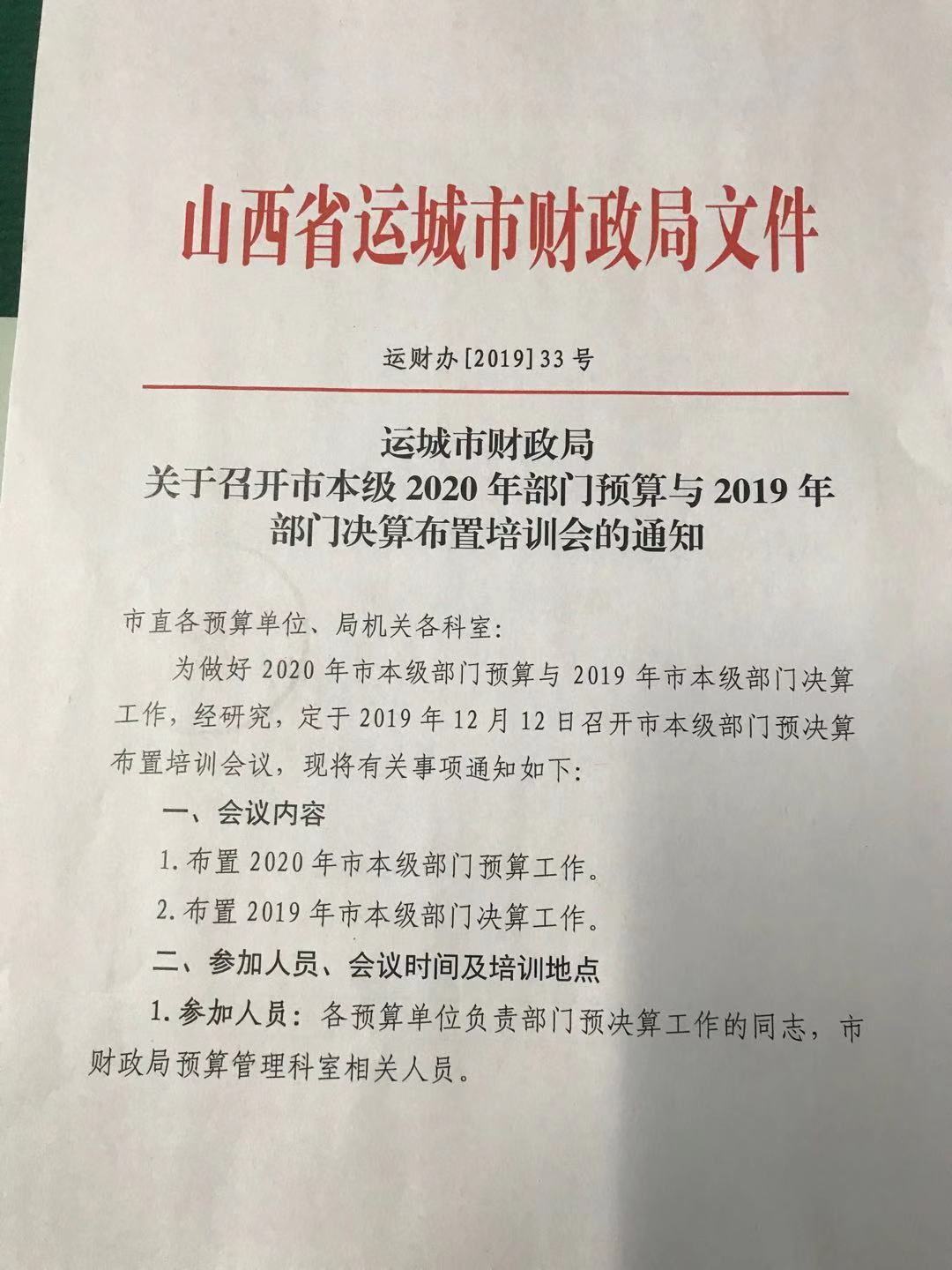 关于召开市本级2020年部门预算与2019年部门决算布置培训会的通知