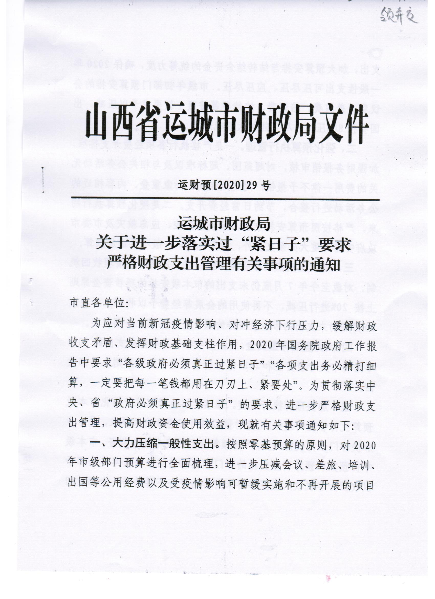 运城市财政局关于进一步落实过“紧日子”要求严格财政支出管理有关事项的通知