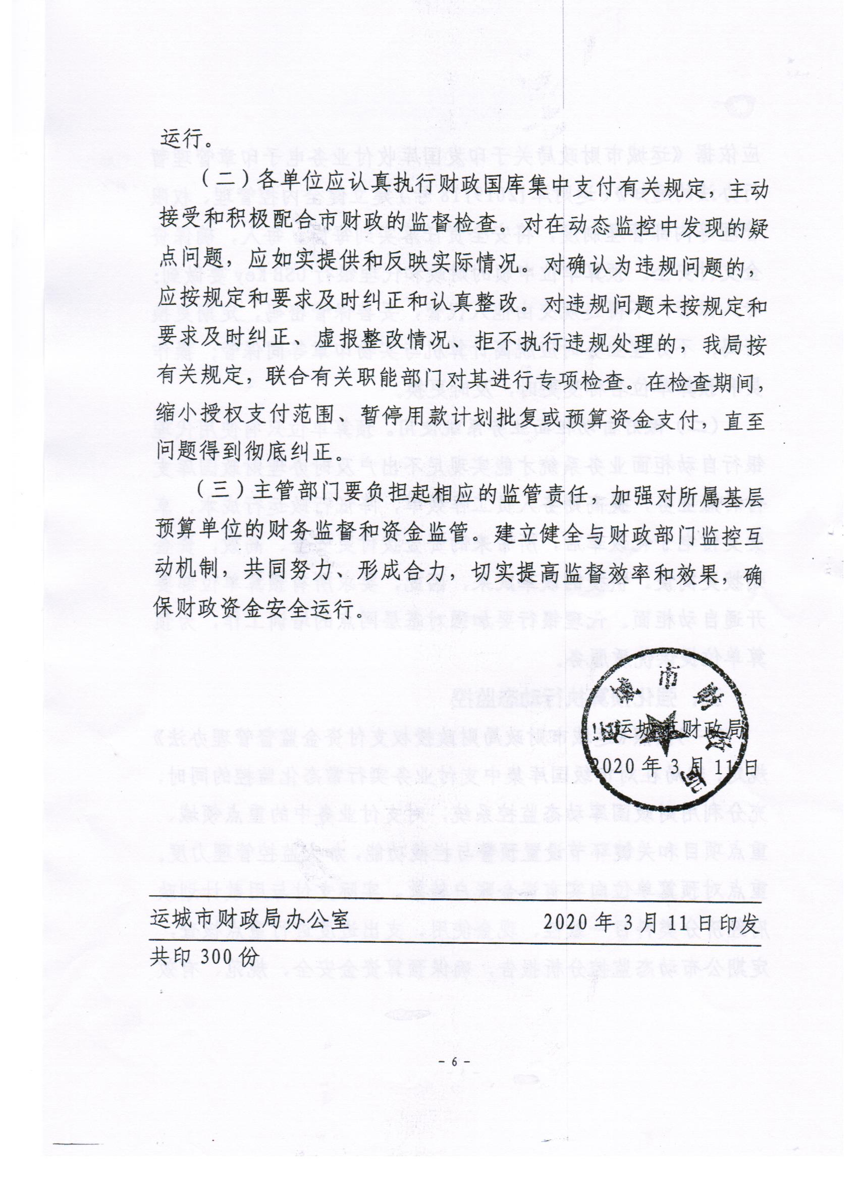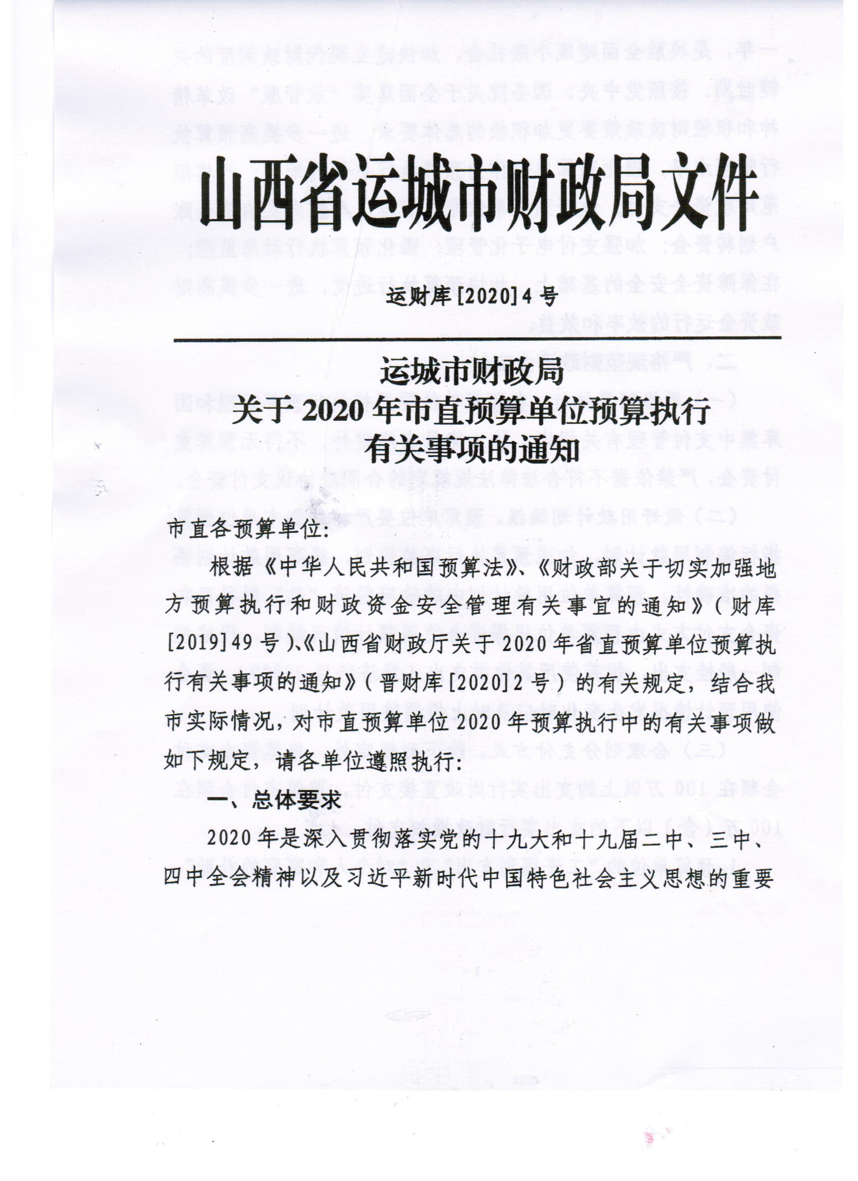 运城市财政局关于2020年市直预算单位预算执行有关事项的通知