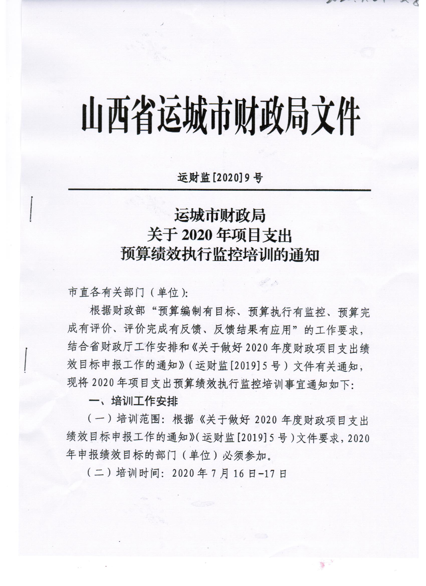 运城市财政局关于2020年项目支出预算绩效执行监控培训的通知