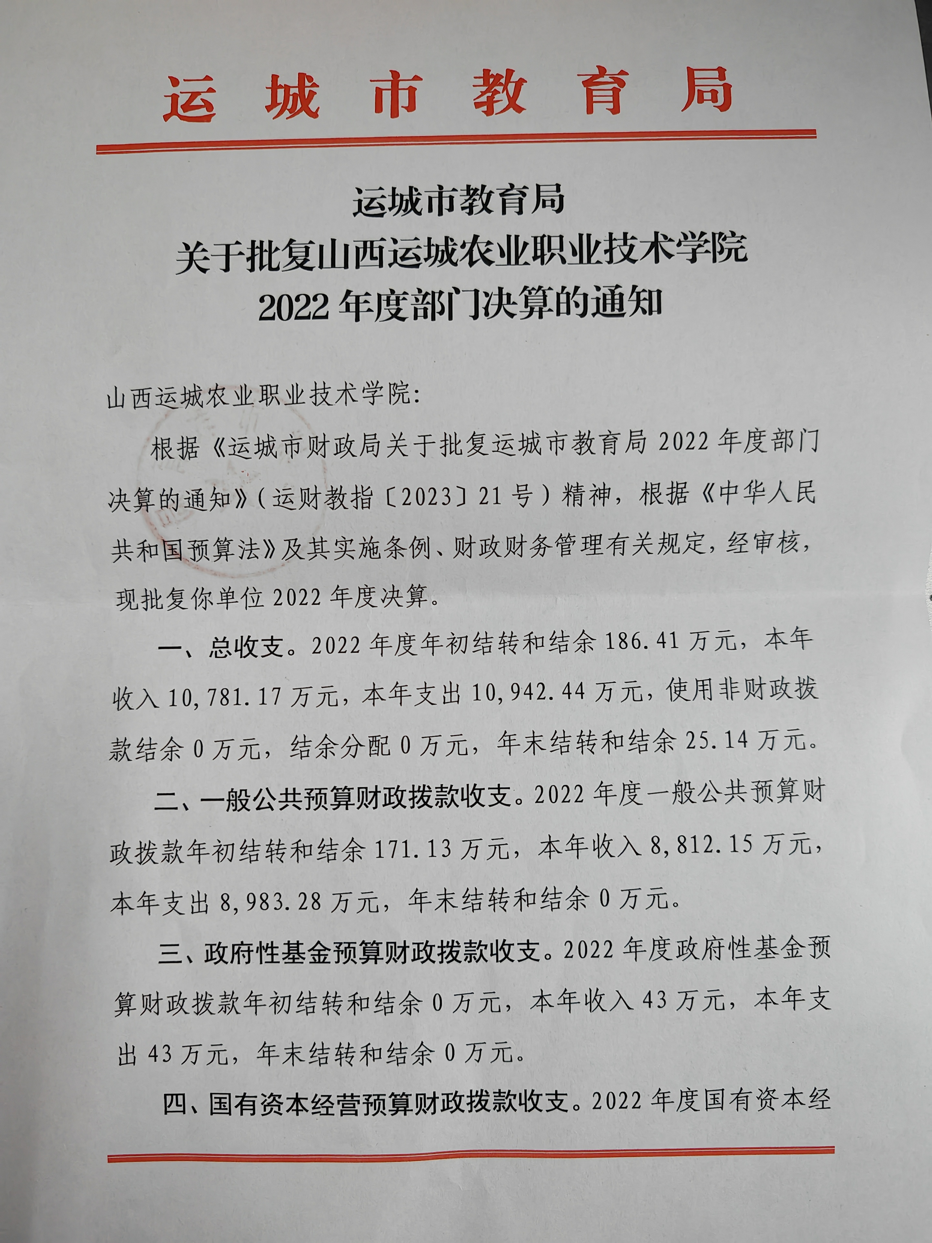 运城市教育局关于批复taptap点点官方网站2022年度部门决算的通知
