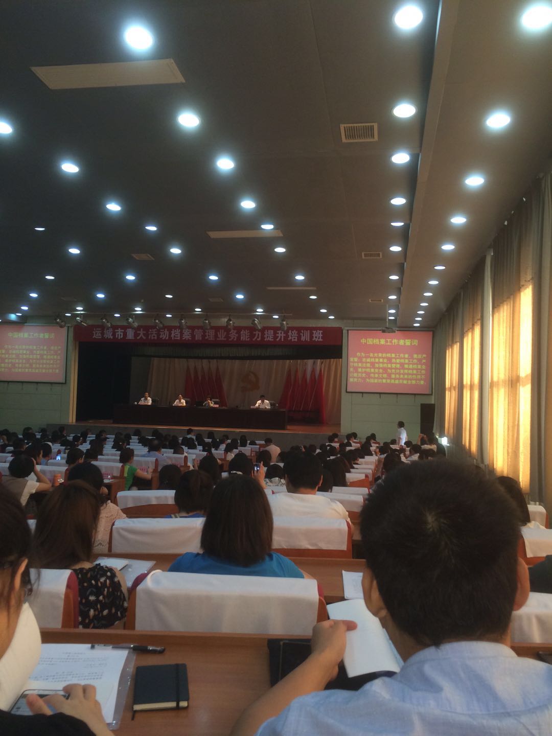 为了全面贯彻执行(山西省重大活动档案管理办法)和(运城市重大活动档案管理细则),进一步规范运城市重大活动档案管理业务工作,2018年6月12日上午在市委党校阶梯教室,院办主任李洪,档案室解青同志参加了全市档案机关档案业务提升培训与测评会议。