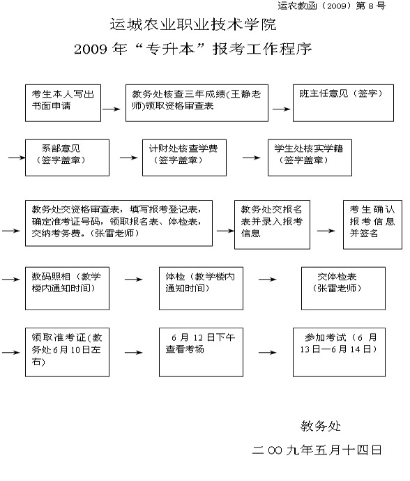 运城农业职业技术学院 2016年“专升本”报考工作程序