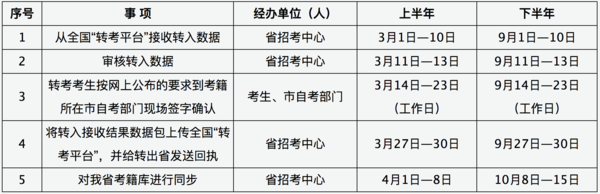 1、省招考中心收到转出地省级考试部门通过全国“转考平台”递送给我省的转入考生电子档案后由自考处进行审核。