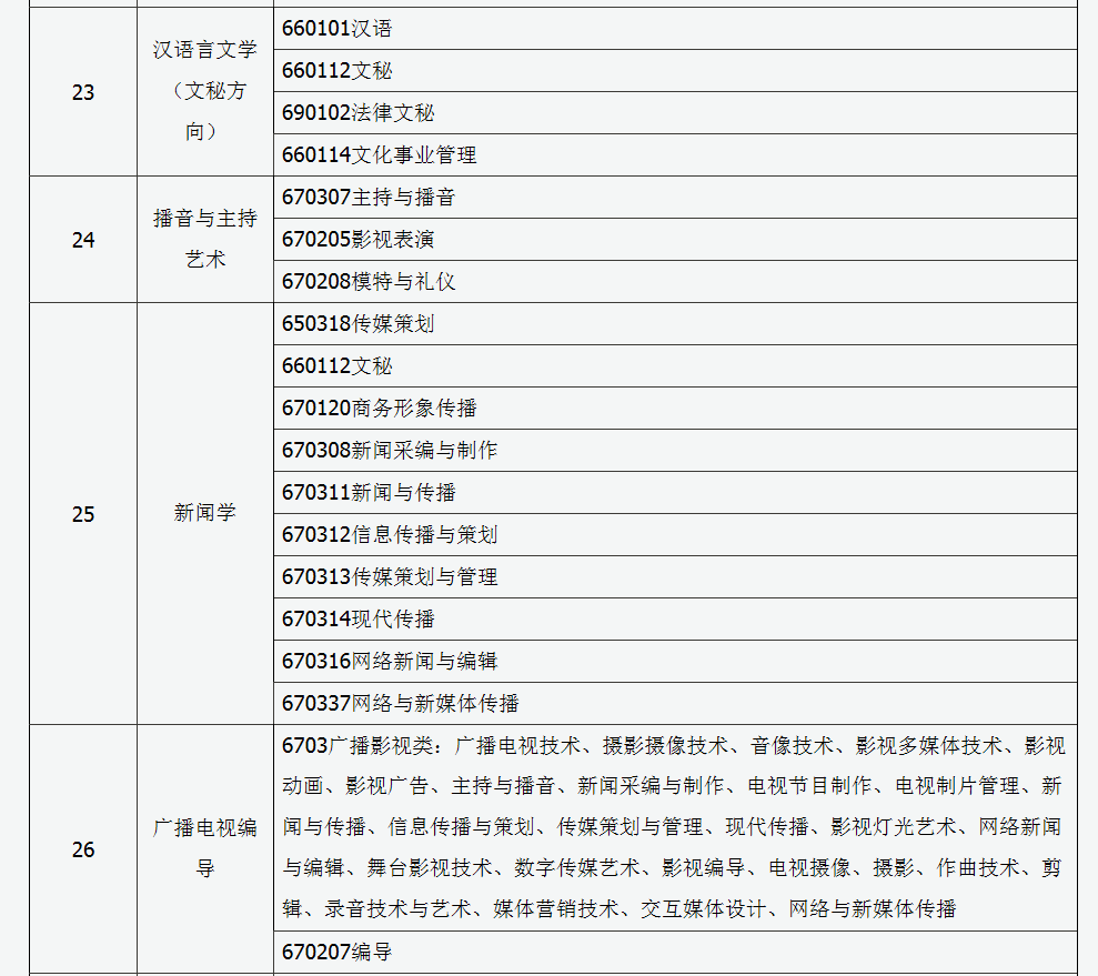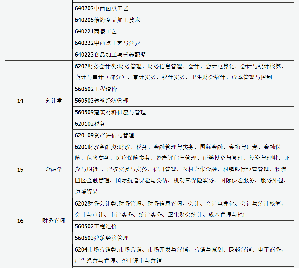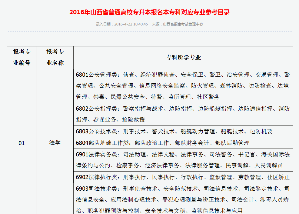 2016年山西省普通高校专升本报名本专科对应专业参考目录