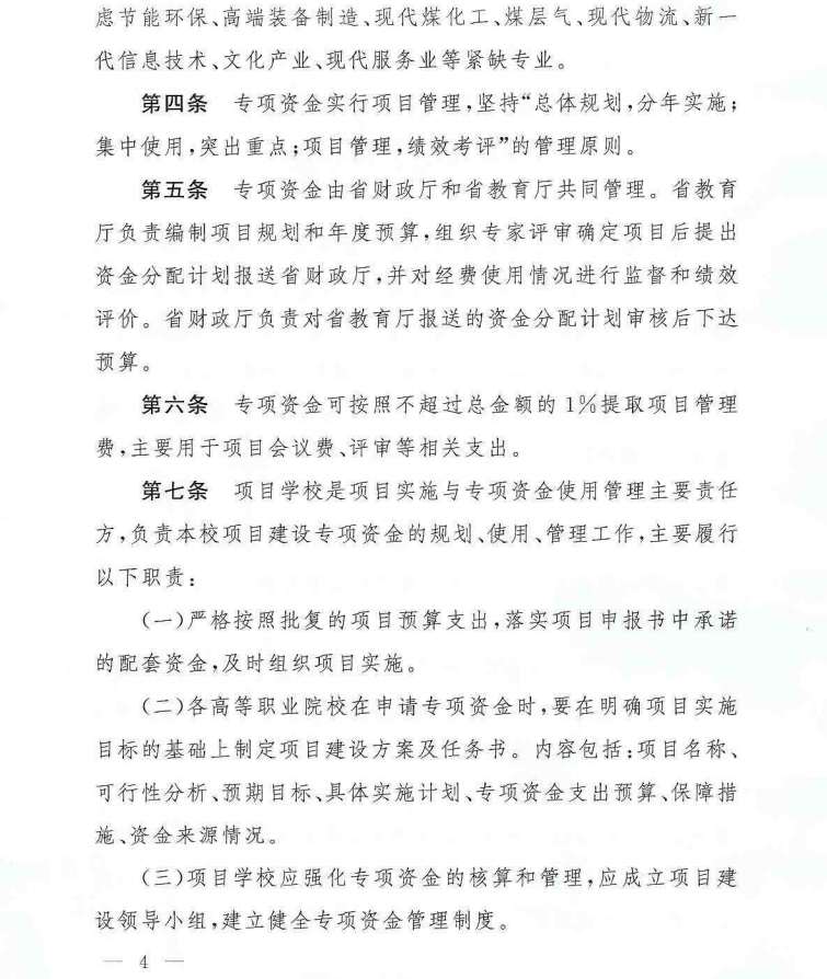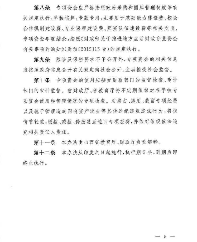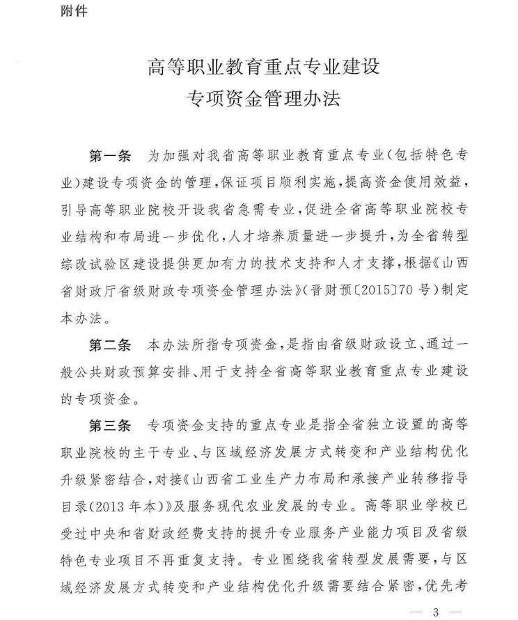 山西省财政厅 山西省教育厅关于钱印发《高等职业教育重点专业建设专项资金管理办法》的通知