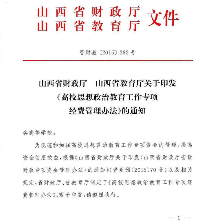 山西省财政厅 山西省教育厅关于印发《高校思想政治教育工作专业经费管理办法》的通知