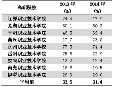 报告显示,2014年高职院校向社会提供技术服务和社会培训取得的收入为26亿元,校均210万元,比上一年增长5%。