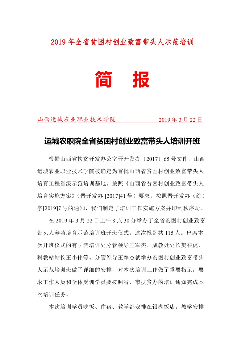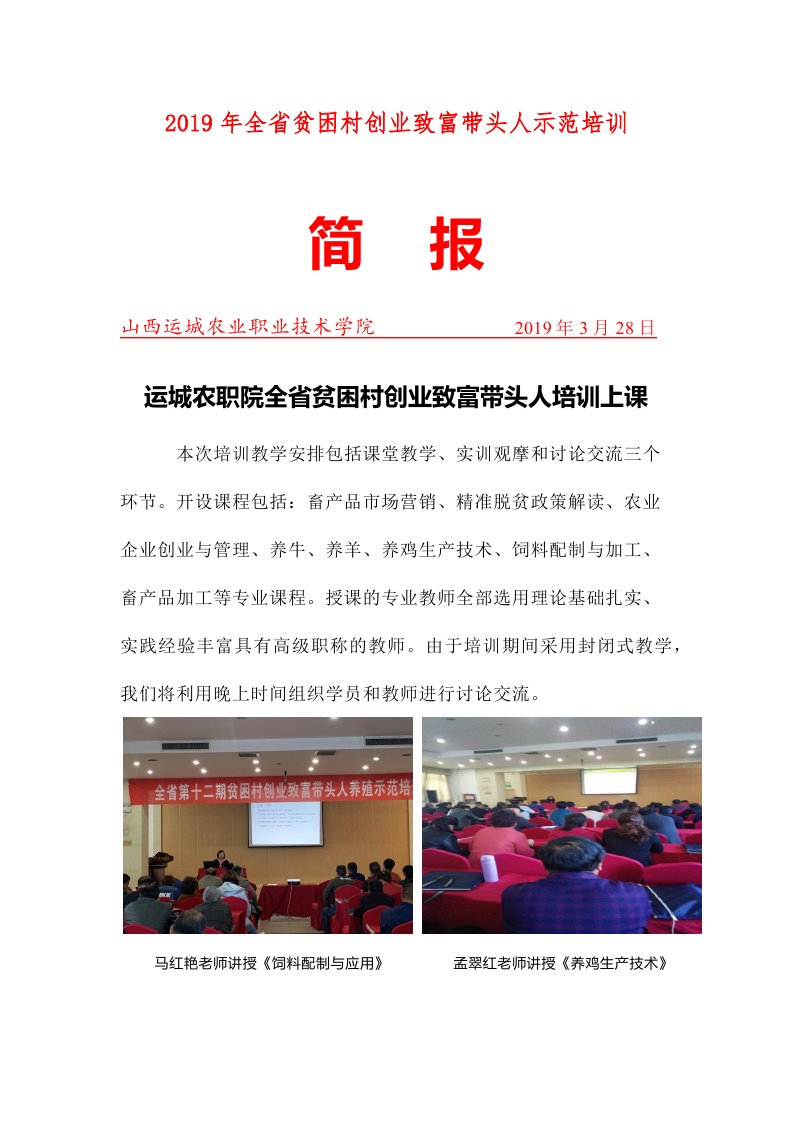 全省第十二期贫困村创业致富带头人养殖示范培训班简报