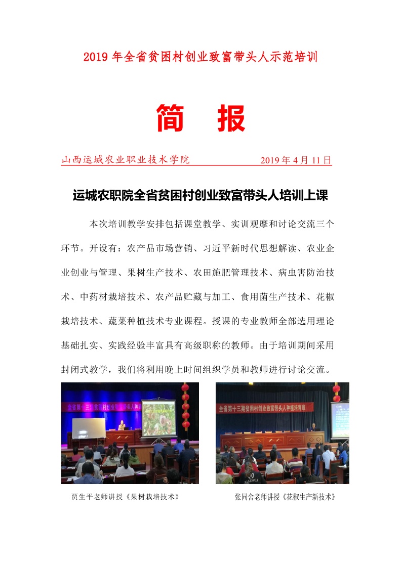 全省第十三期贫困村创业致富带头人种植示范培训班简报