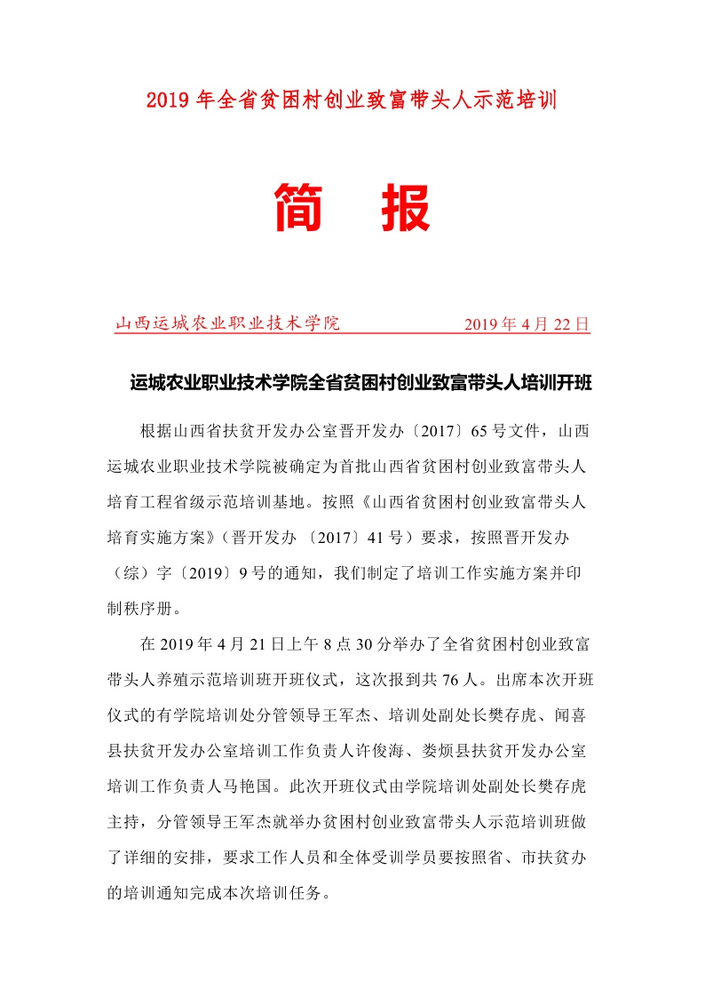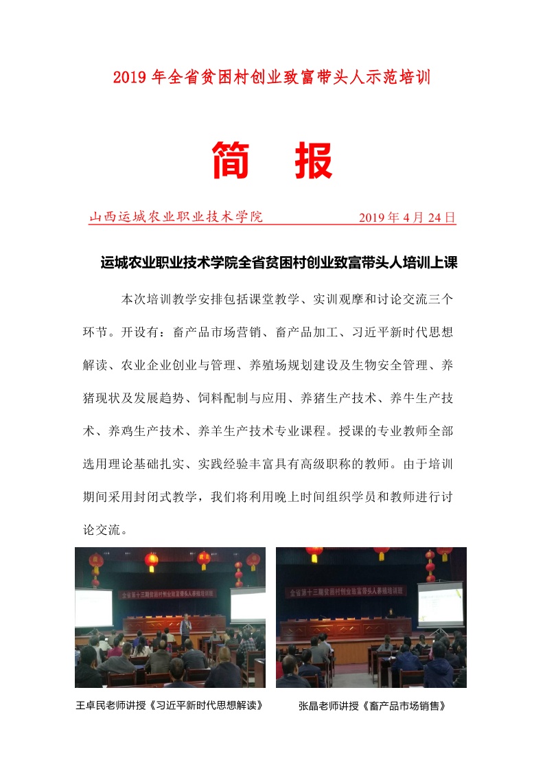 全省第十四期贫困村创业致富带头人养殖示范培训班简报