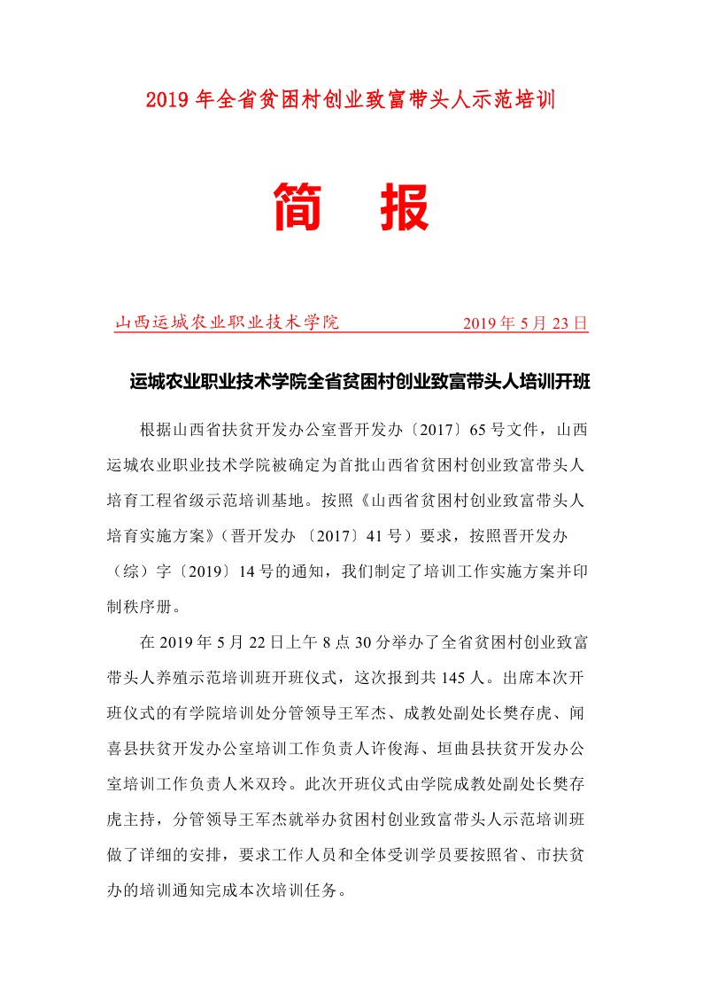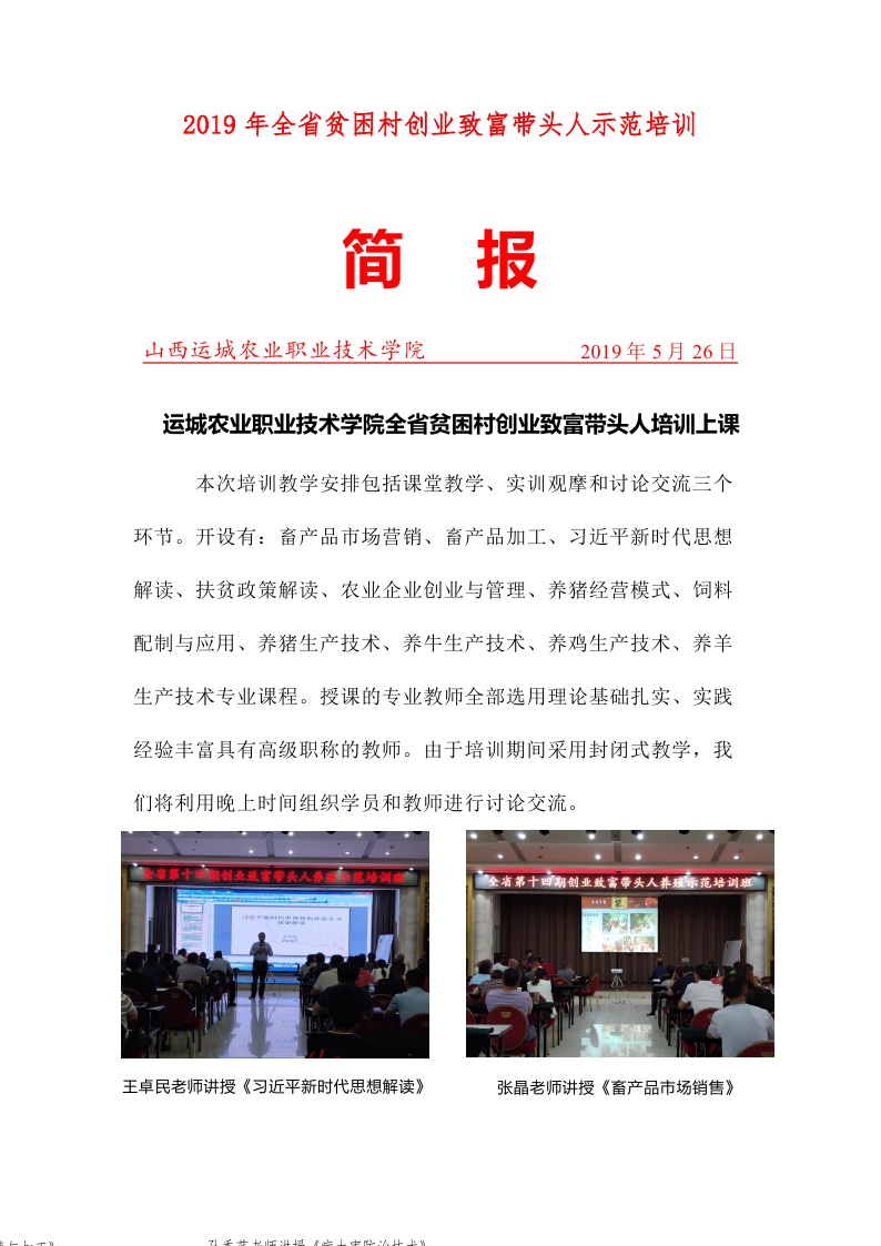 全省第十四期贫困村创业致富带头人养殖示范培训班简报