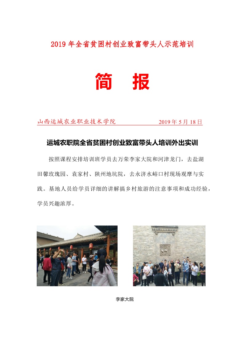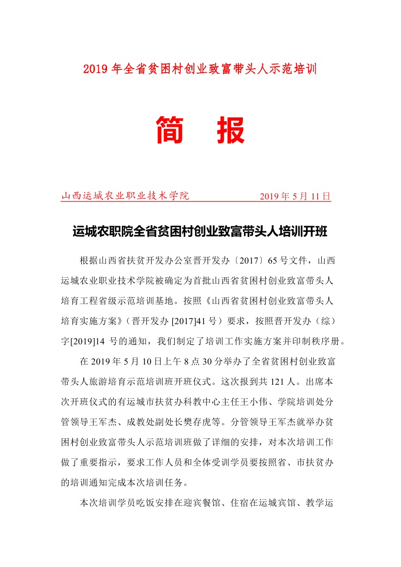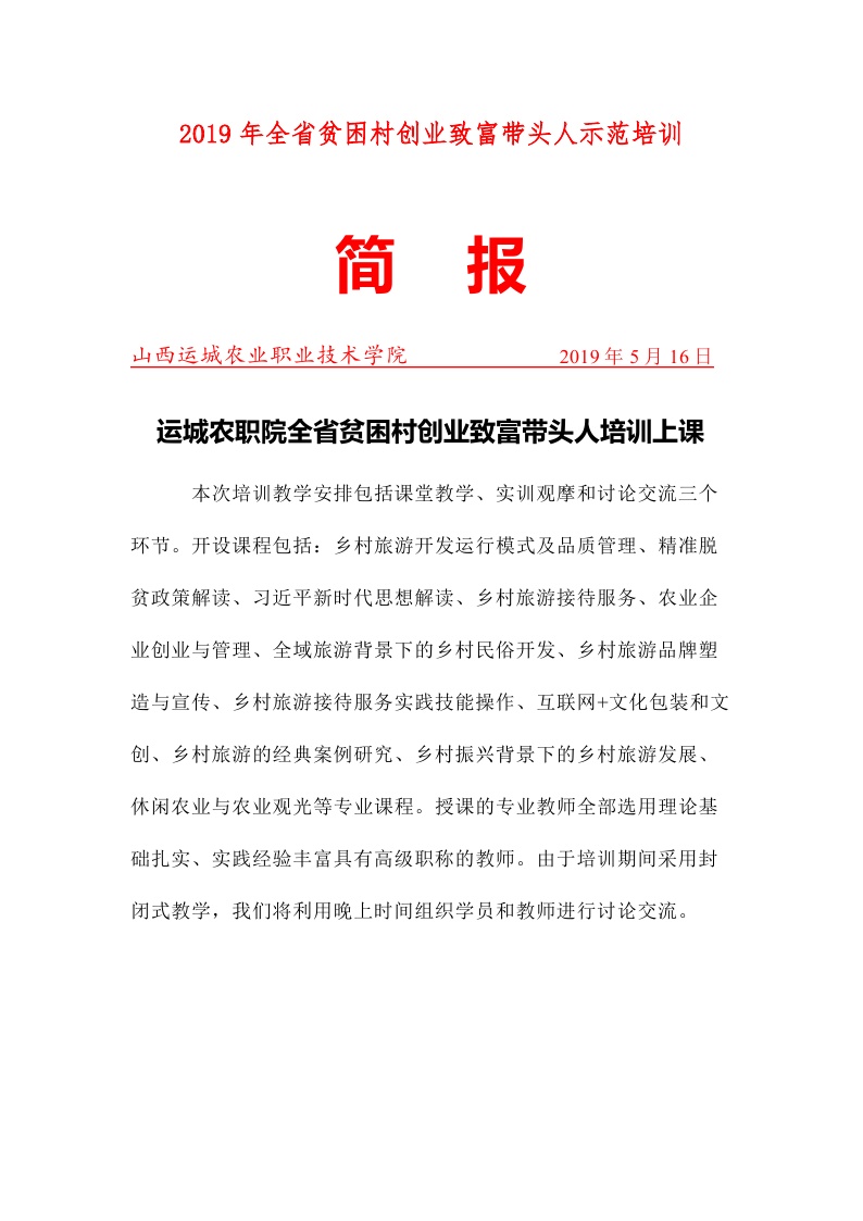 全省第十五期贫困村创业致富带头人旅游示范培训班简报