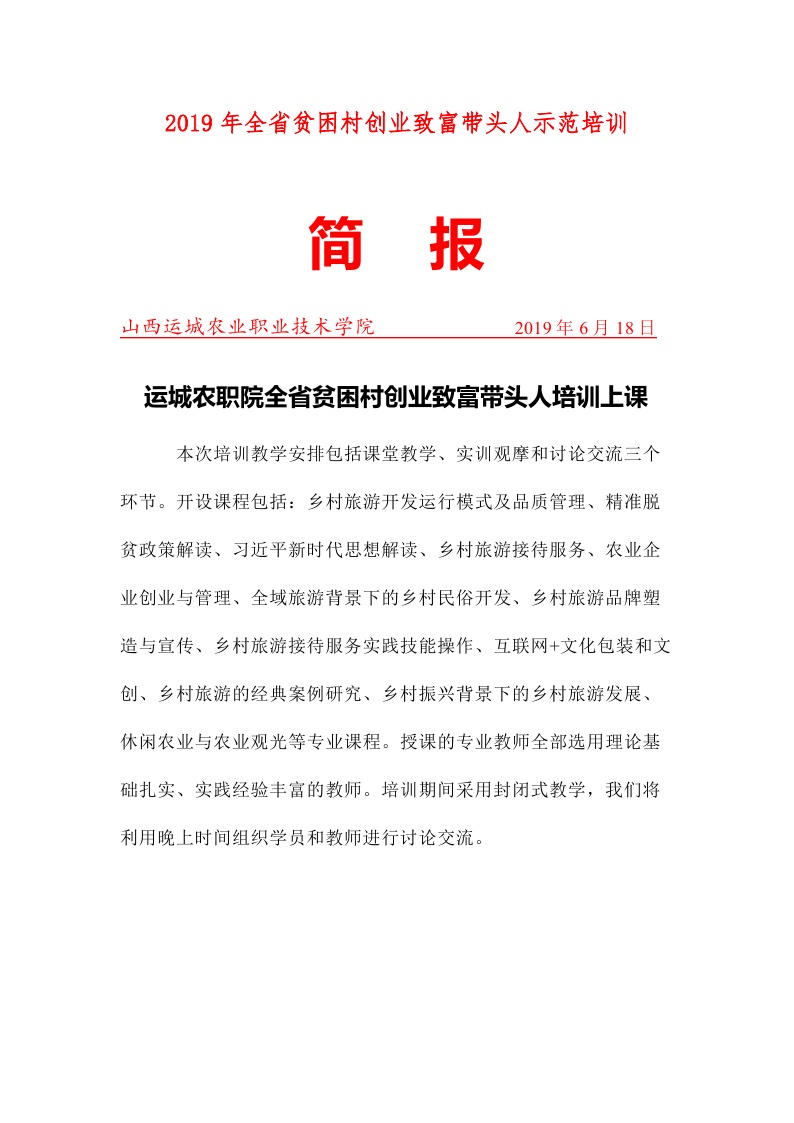 全省第十五期贫困村创业致富带头人旅游示范培训班简报