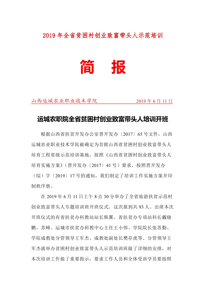 下一篇:全省第十五期贫困村创业致富带头人现代农业示范培训班简报(运城)