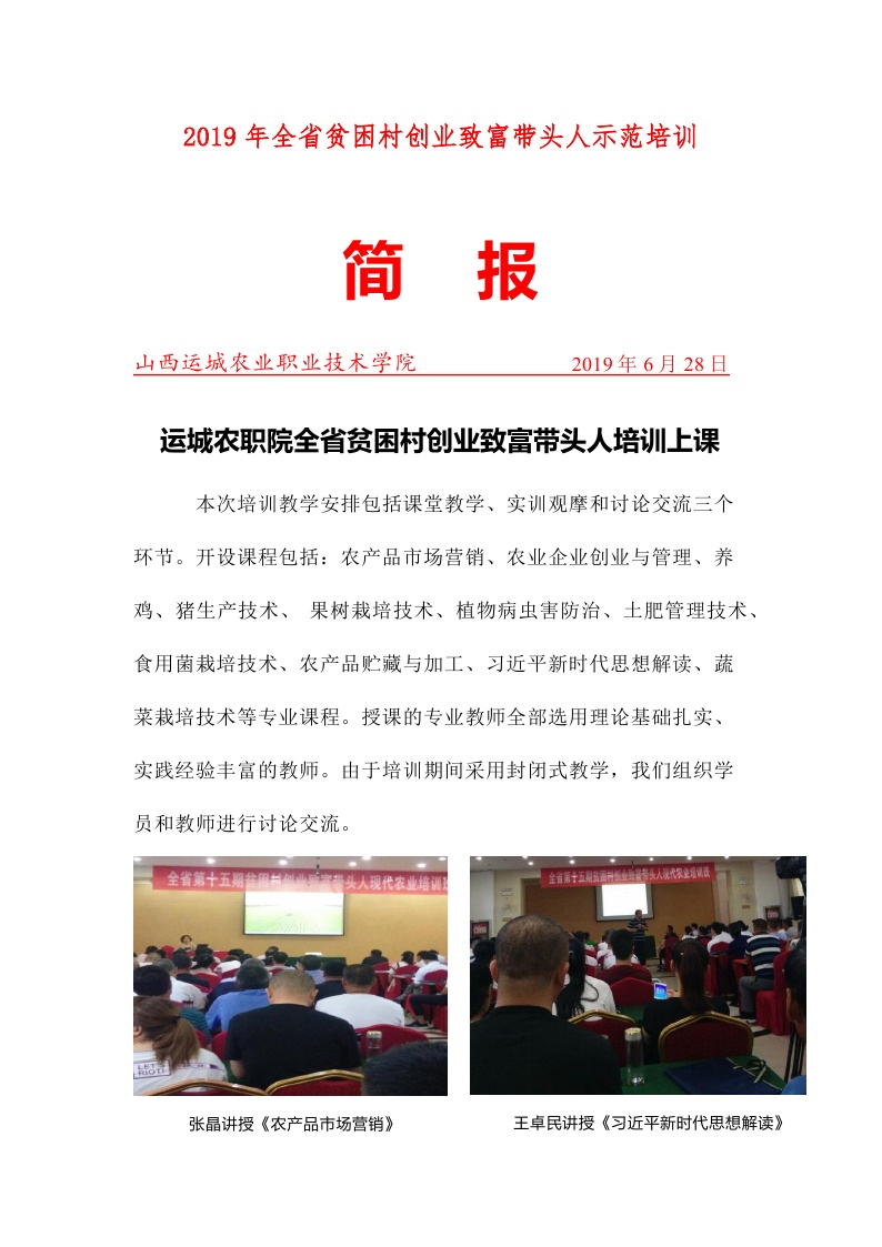 全省第十五期贫困村创业致富带头人现代农业示范培训班简报