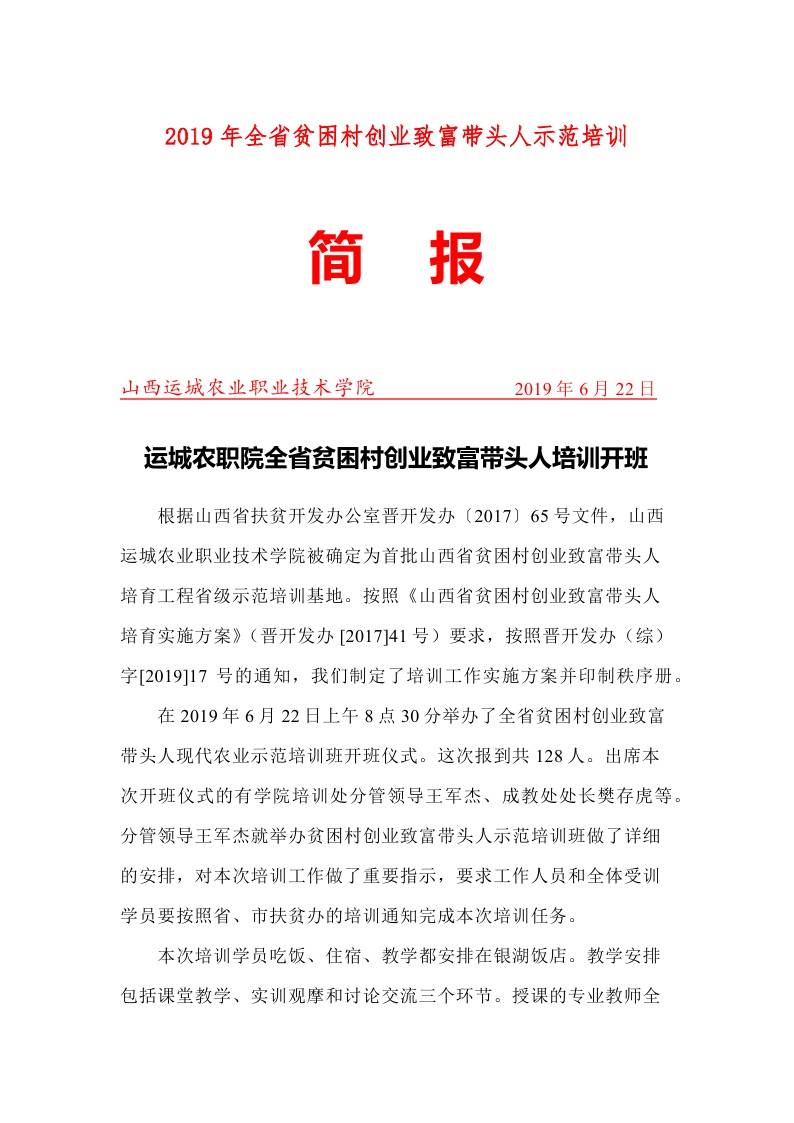 上一篇:全省第十五期贫困村创业致富带头人现代农业示范培训班简报(运城)