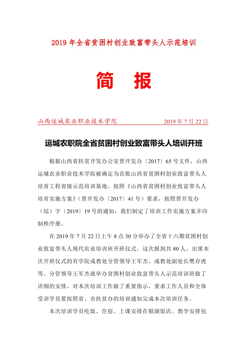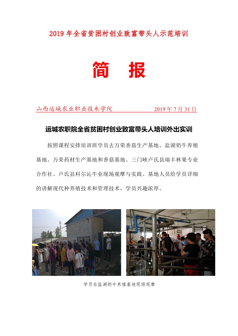 全省第十六期贫困村创业致富带头人现代农业示范培训班简报