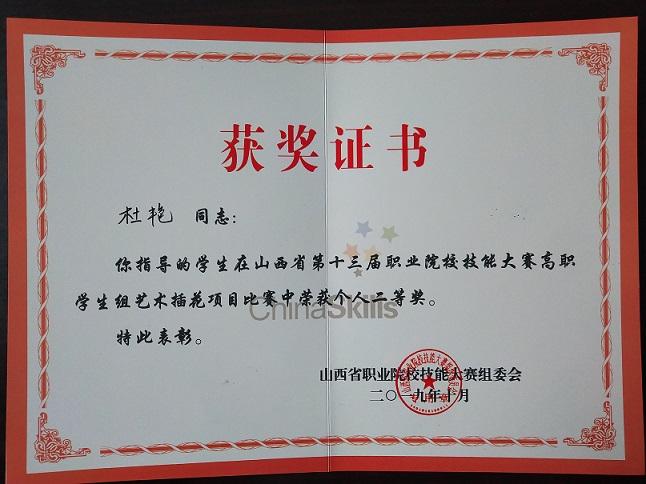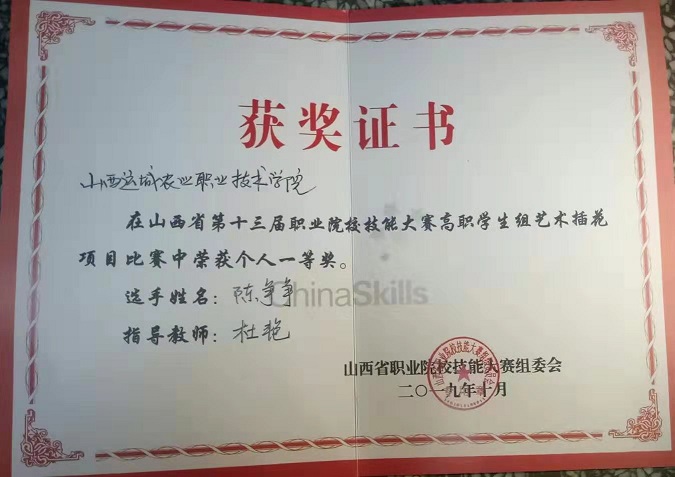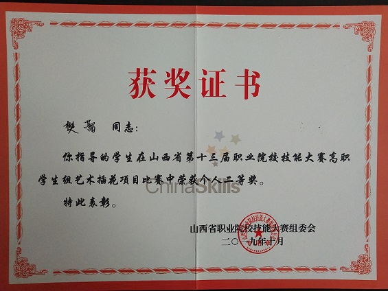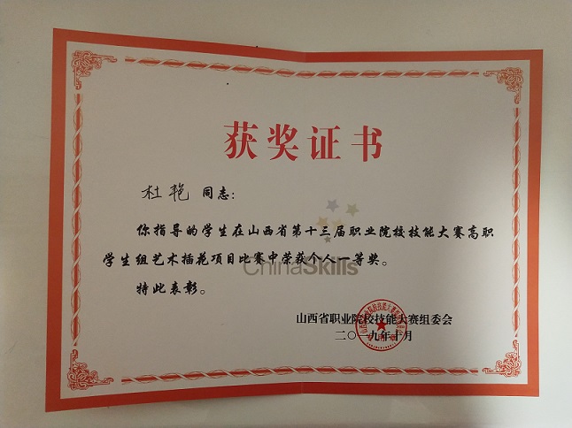 10月25—28日,山西省第十三届职业院校“中雅标”高职组艺术插花项目在山西林业职业技术学院举办。taptap点点农林与工程系园艺技术专业杜艳、樊蕾两位老师带领陈争争、赵启、王婷和罗艳娇四位学生参加比赛。全省共有10所院校42名选手参赛。经过为时2天,8个项目的精彩比赛,激烈角逐,taptap点点陈争争喜获一等奖,赵启、王婷获二等奖,杜艳、樊蕾获优秀指导教师称号。