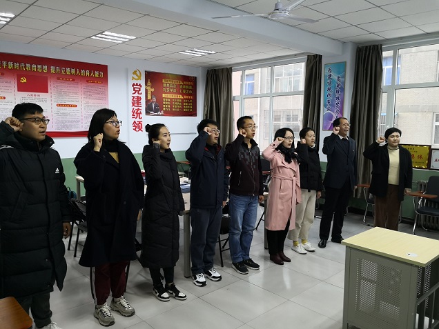 随后教师杨晓玉带领新入职教师郑重宣誓:忠诚党的教育事业,贯彻国家教育方针,履行教师神圣职责。修身立德,为人师表;终身学习,严谨治学;关爱学生,教书育人;传承文明,勇于创新;爱国守法,爱岗敬业;廉洁从教,乐于奉献。为全体学生美好未来,我愿奉献全部智慧和力量!