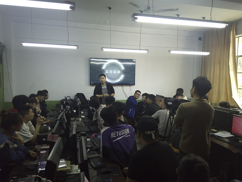 大二年级计算机专业的方向班实训项目授课自2019年4月8日开始,两周的实训内容于2019年4月19日早上顺利结束,并且每个方向分组对这两周的学习内容进行了汇报,系主任、方向老师以及德克特的上课老师共同参与了这次的汇报,每组汇报要求人人上台展示自己所完成的作业并且陈述自己的设计思路和设计亮点,最后上课老师点评总结其作品的优缺点。各个方向的汇报基本圆满成功,通过这次实训使孩子们都学到了不少东西,学到知识的同时也学到了一些行业中的规范和企业运作的模式。
