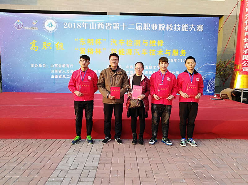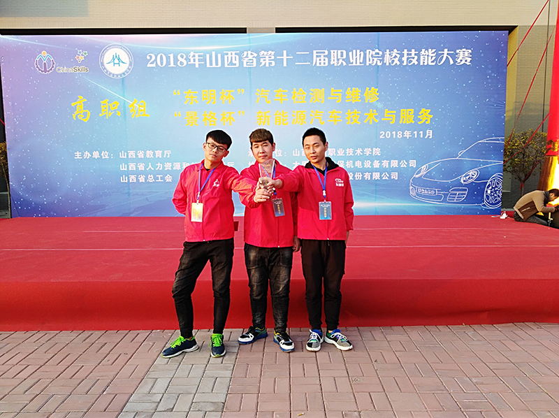 在2018年山西省第十二届职业院校技能大赛上,我系汽车检测与维修专业代表队,在杜朝、仙晓宁老师指导下,王帅、苏俊锟和乔云山三名同学团结协作、奋力拼搏,取得“东明杯”汽车检测与维修赛项团体三等奖的好成绩。
